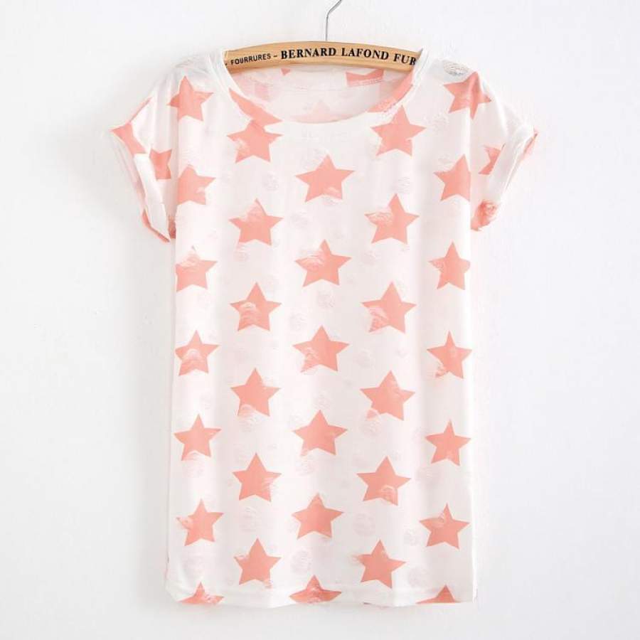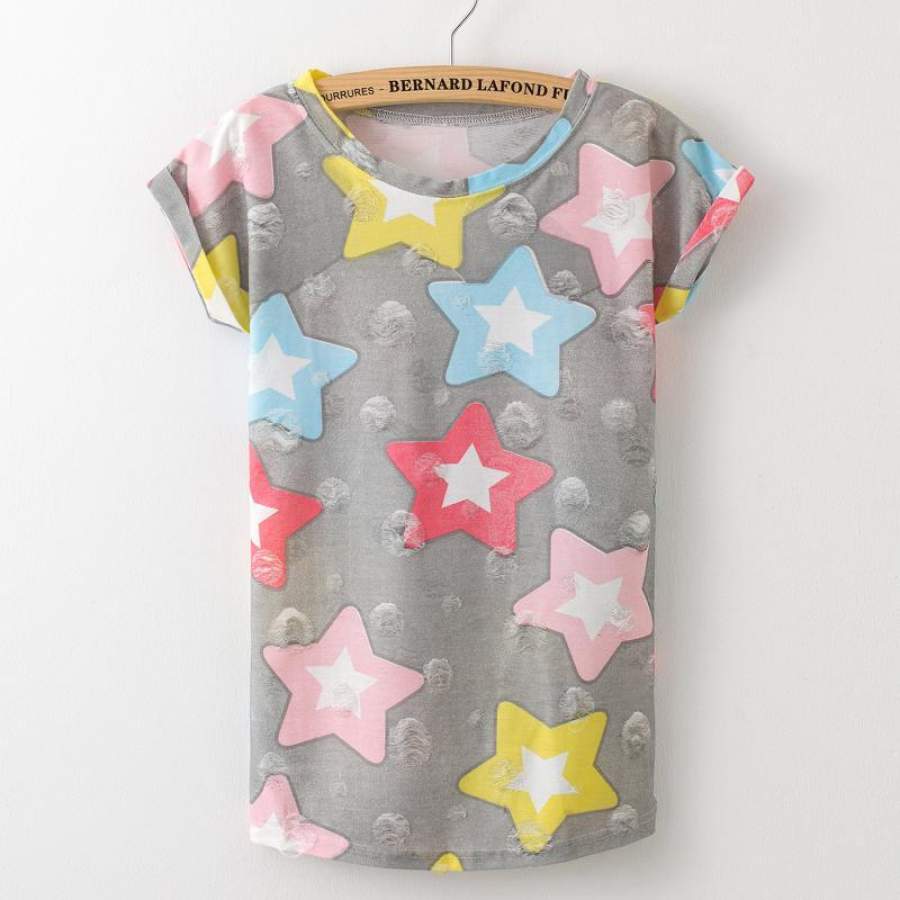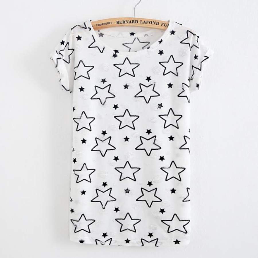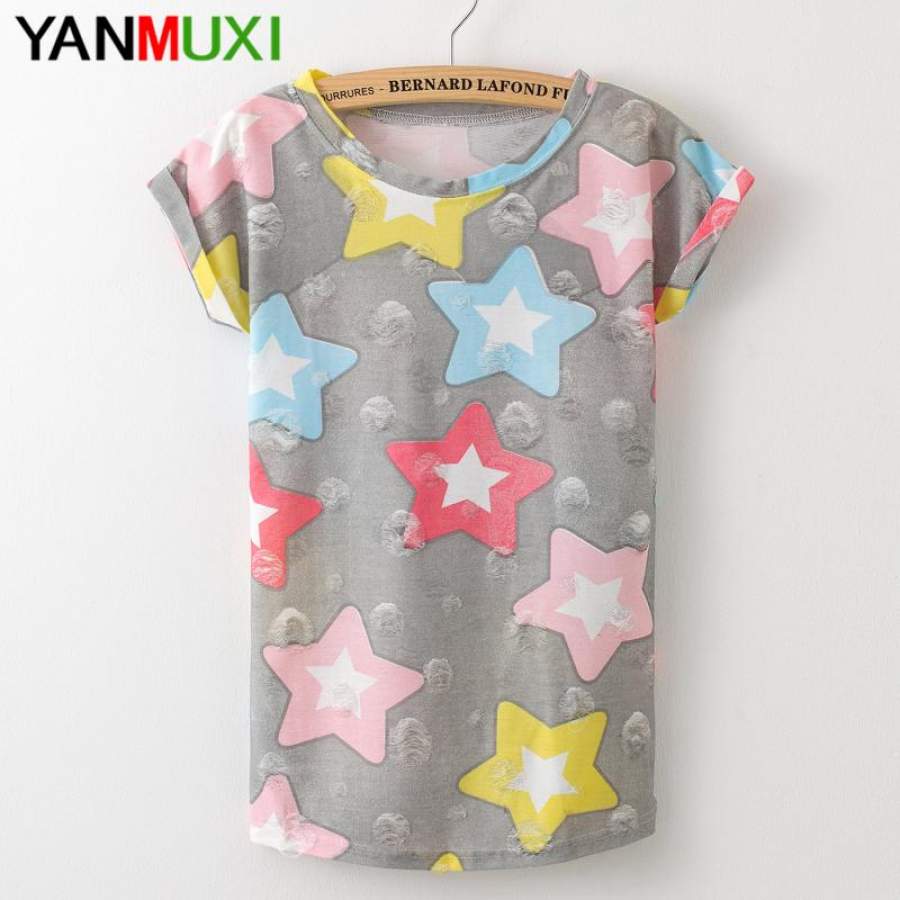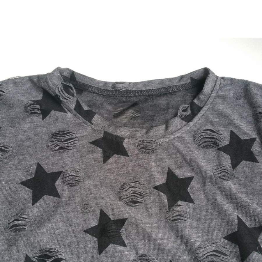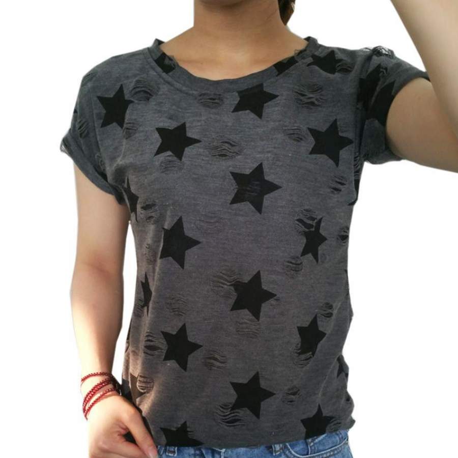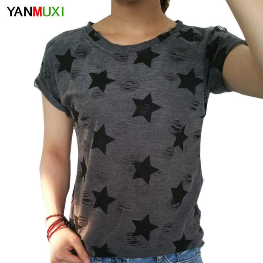 2017 Women Plus Size Hole T shirt Ladies short sleeve star print vintage casual T-shirt big size summer tops for woman
