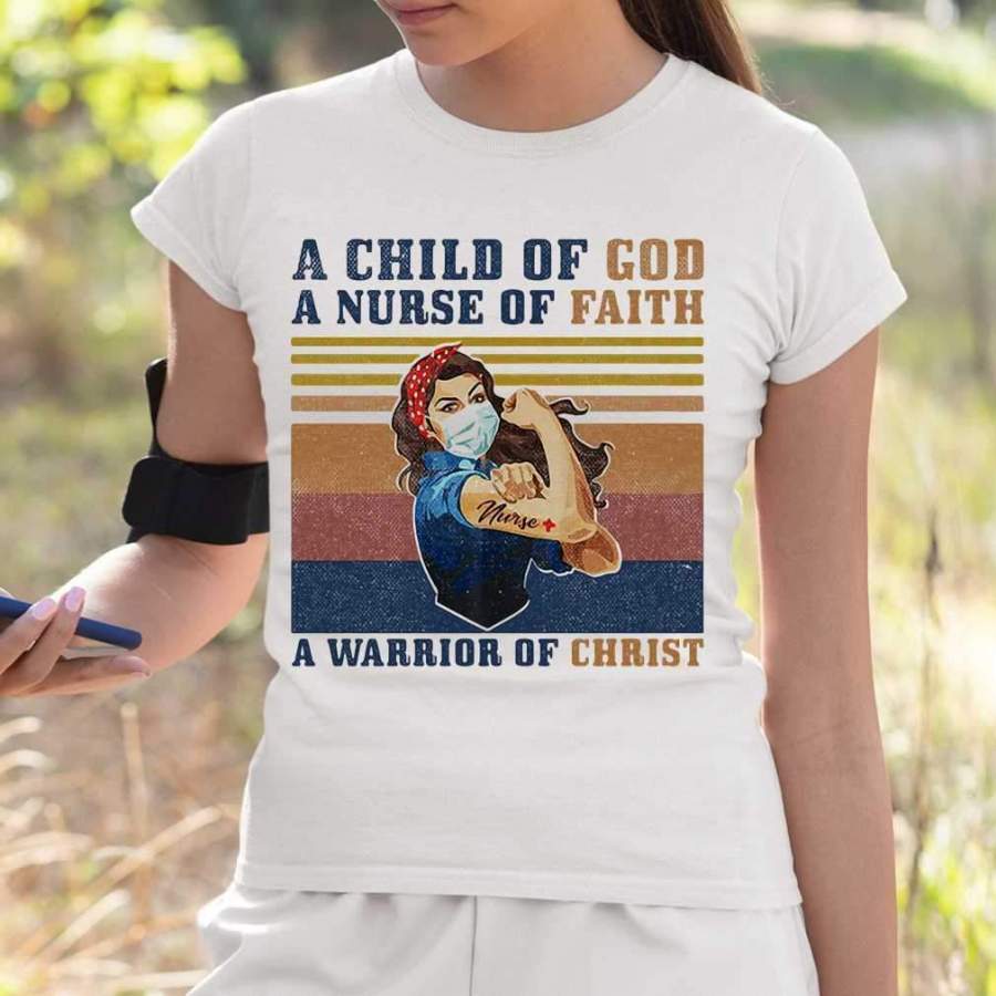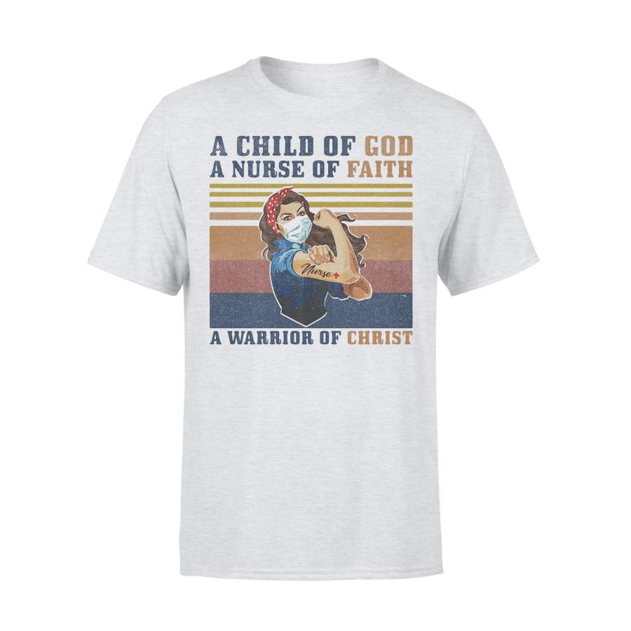 A Child Of God A Nurse Of Faith A Warrior Of Christ Strong Nurse Vintage Retro T-shirt