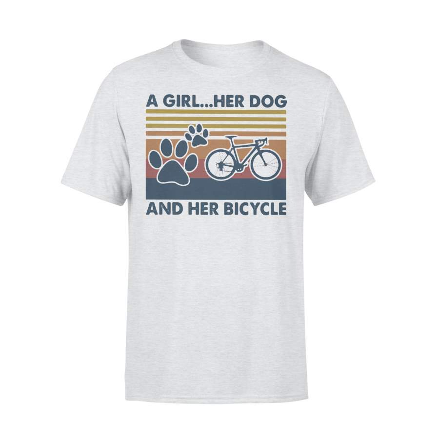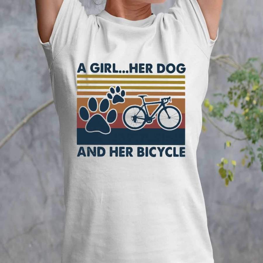 A Girl Her Dog And Her Her Bicycle Vintage Retro T-shirt