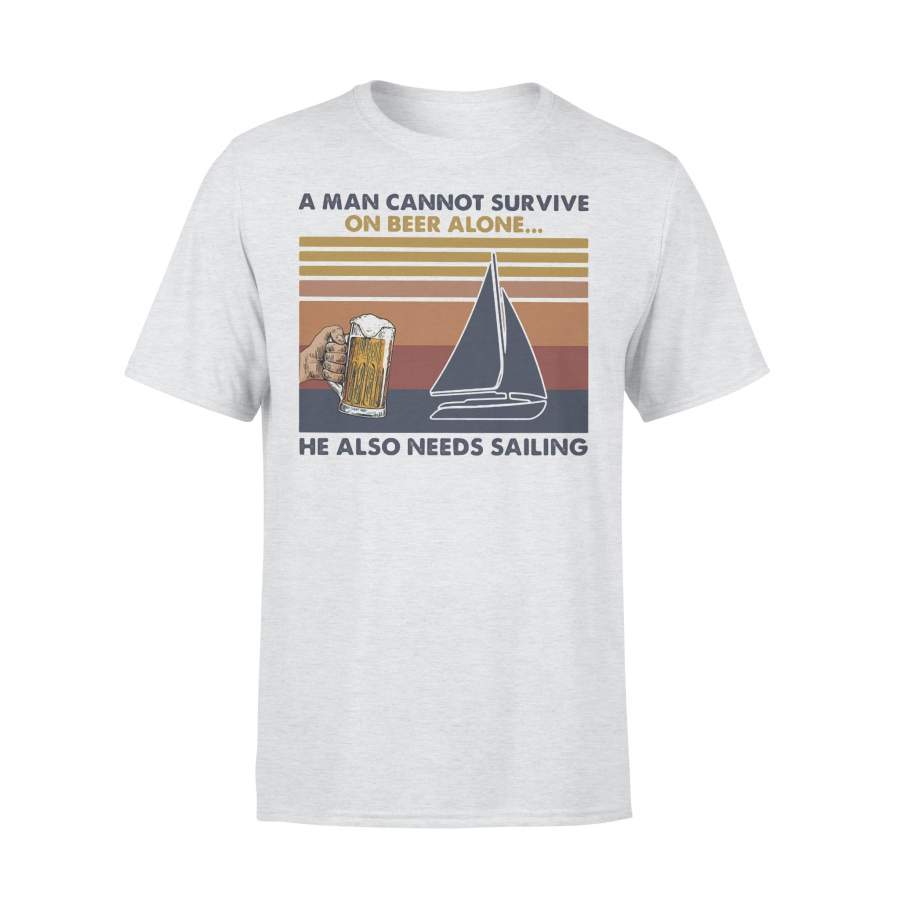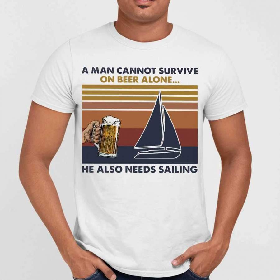 A Man Cannot Survive On Beer Alone He Also Needs Sailing Vintage Retro T-shirt