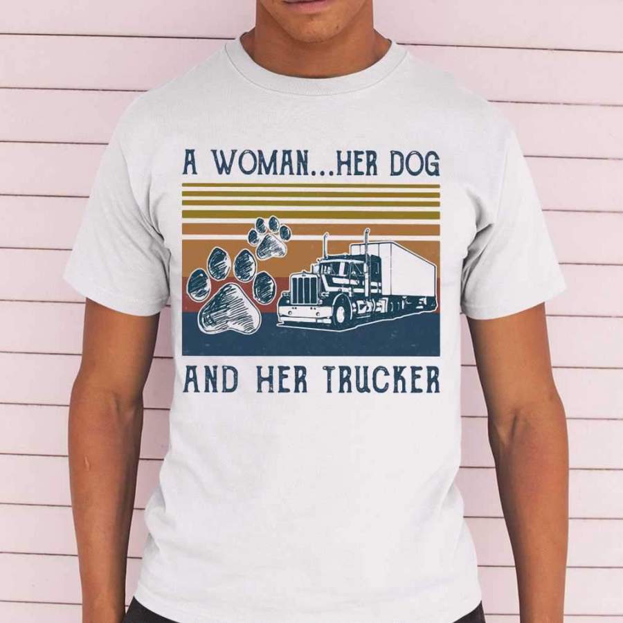 A Woman Her Dog And Her Trucker Vintage T-shirt
