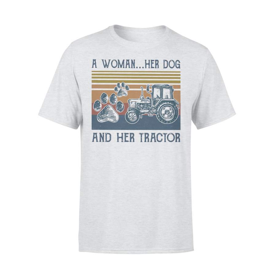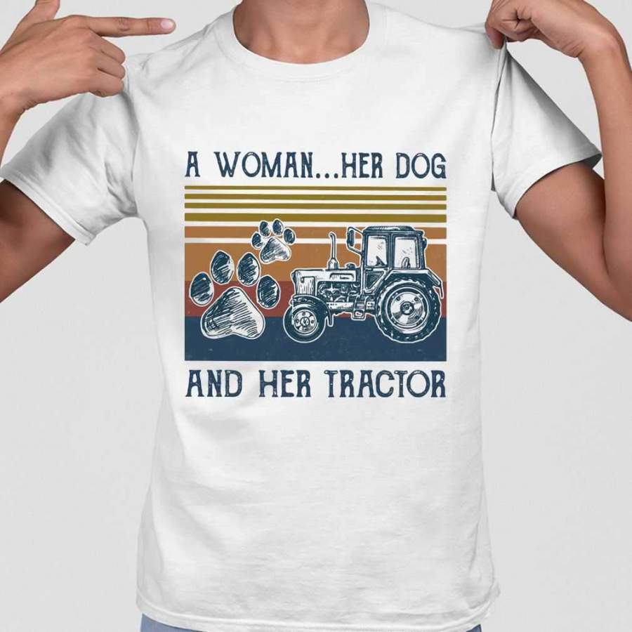 A Woman Her Paw Dog And Her Tractor Vintage Retro T-shirt
