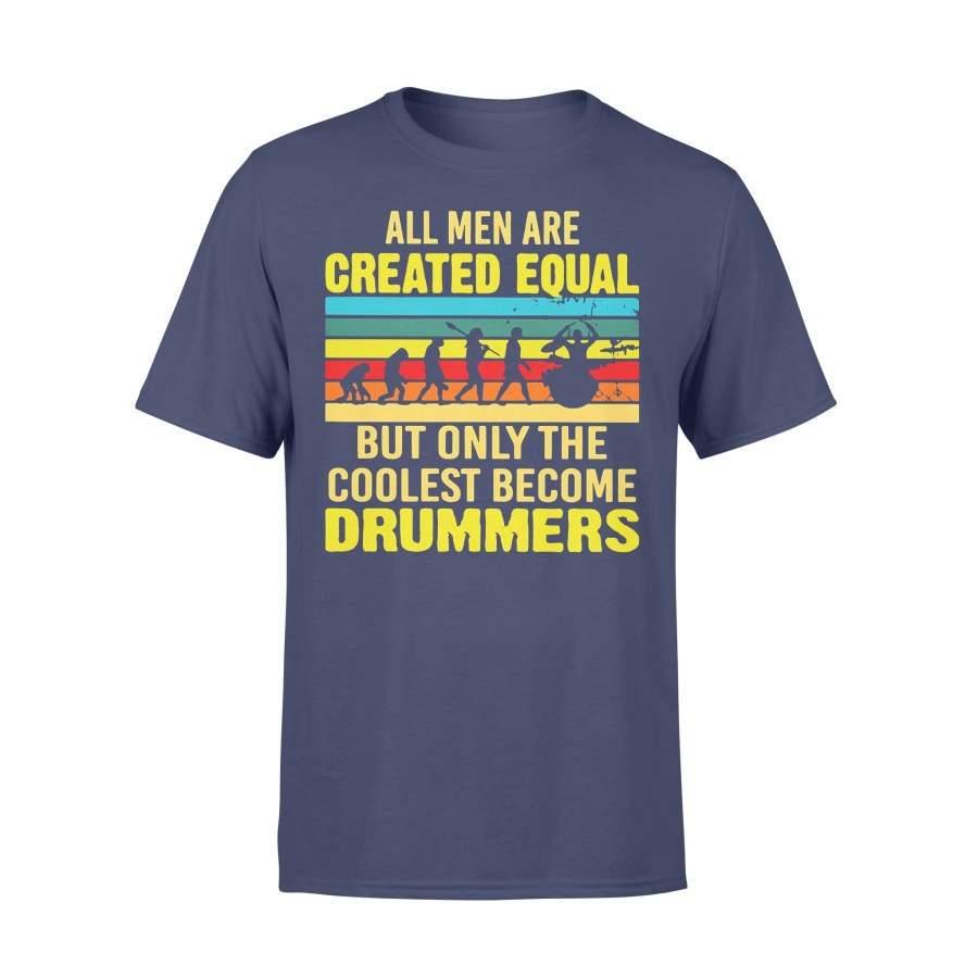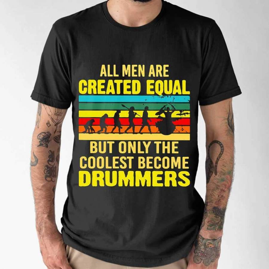 All Men Are Created Equal But Only The Coolest Become Drummers Vintage Retro T-shirt