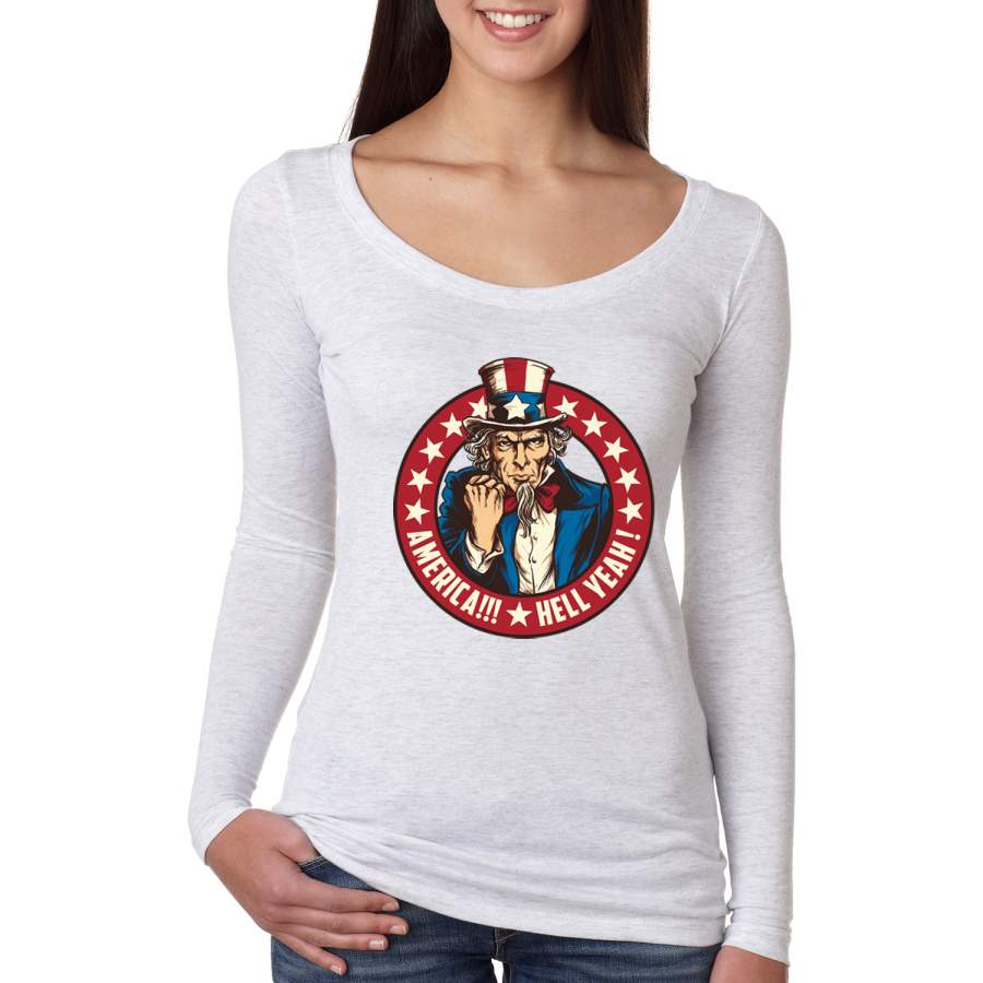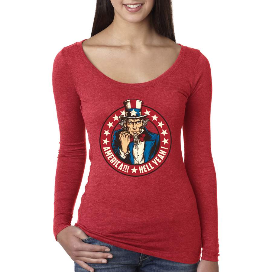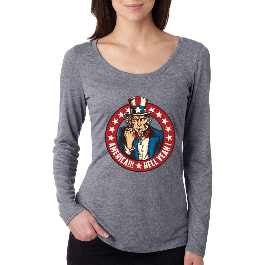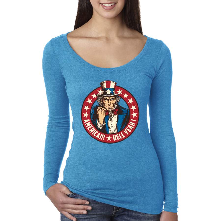 America Hell Yeah! Vintage Uncle Sam Logo USA Pride Americana / American Pride Womens Scoop Long Sleeve Top