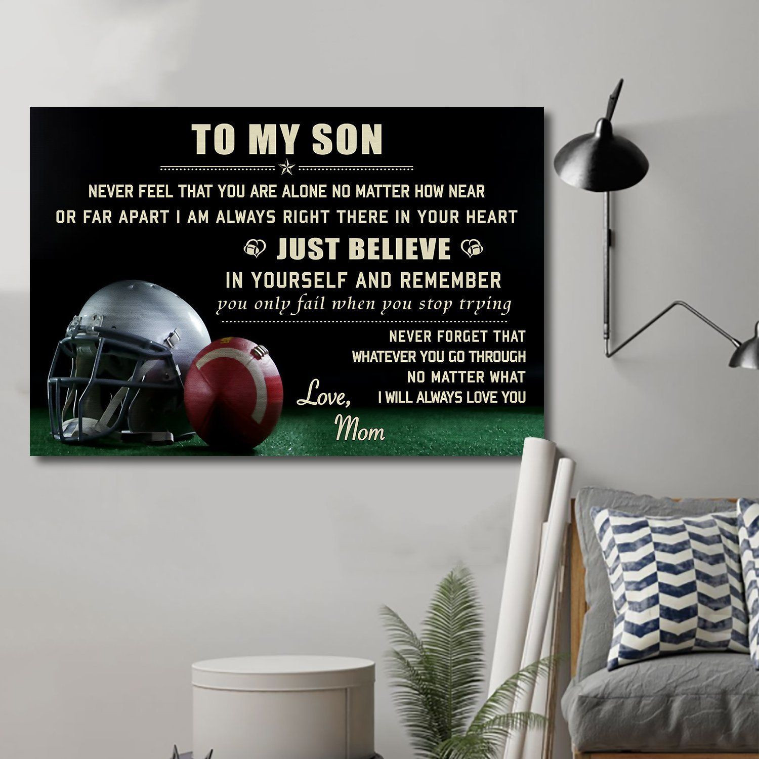 American Football Canvas And Poster Son Mom Just Believe Wall Decor Visual Art