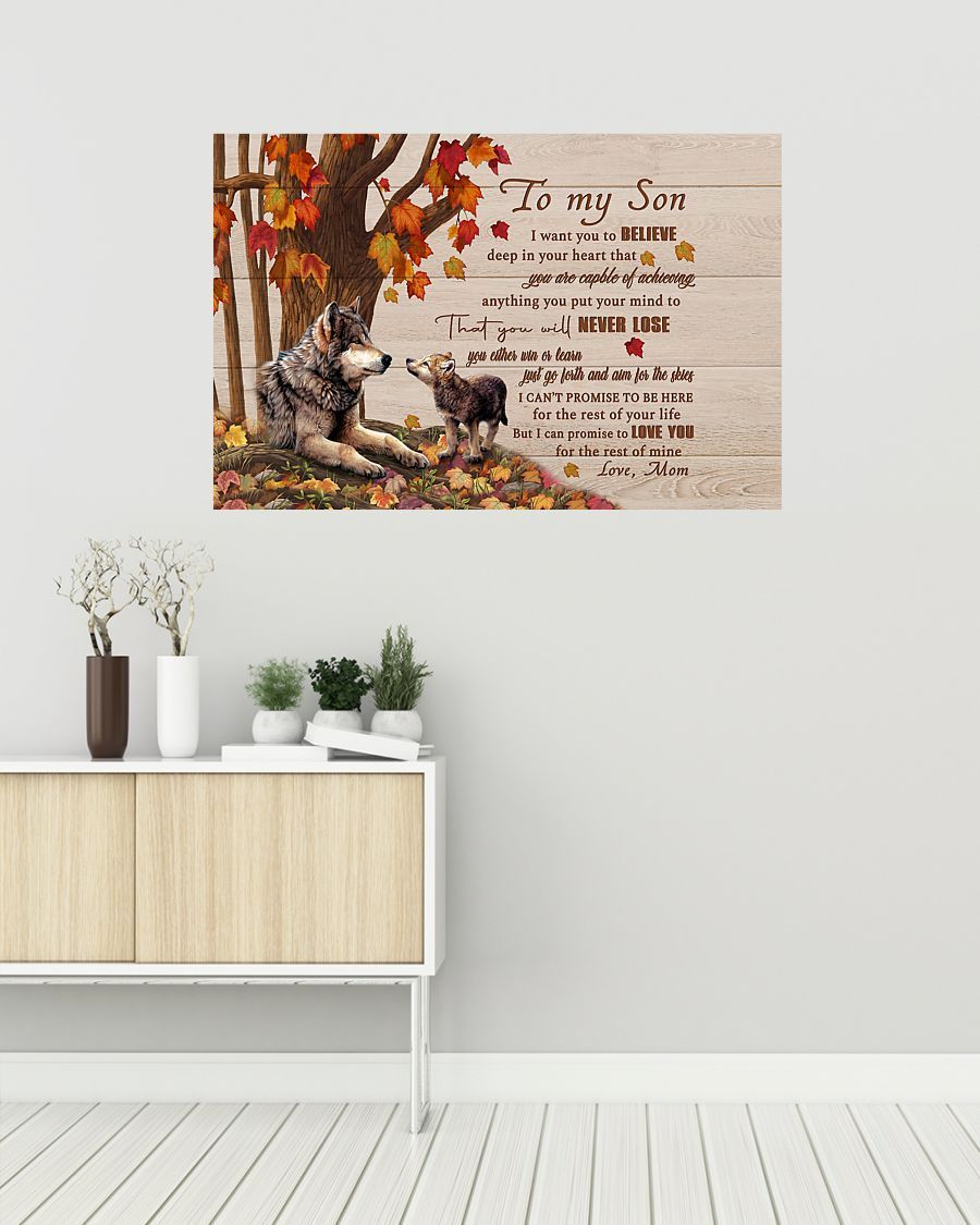 Autumn Leaves Wolves Never Lose Mom Gift For Son Horizontal Poster