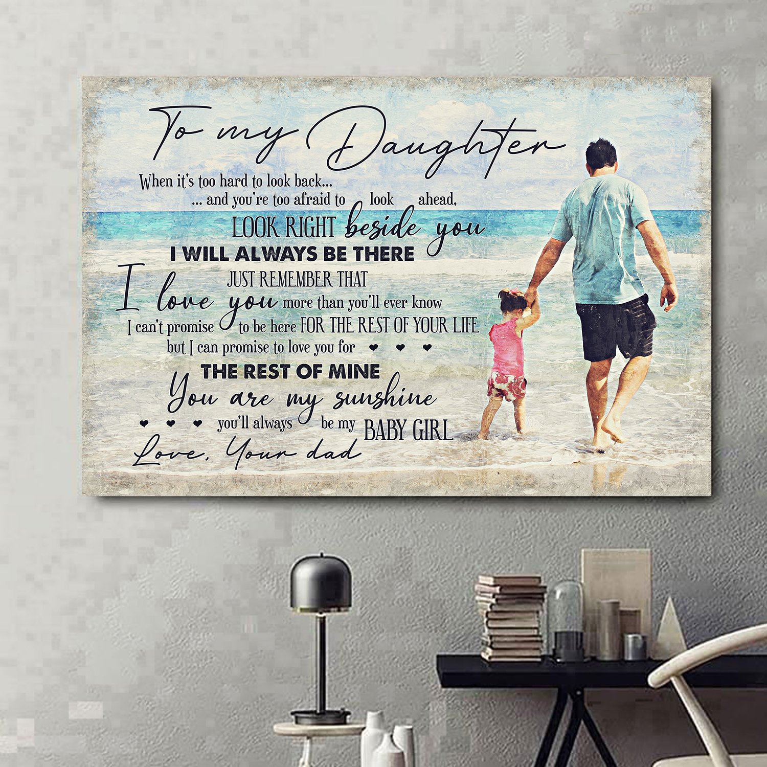 Awesome Family Gift For Daughter From Dad – When It’s Too Hard To Look Back…And You’re Too Afraid To Look Ahead, Look Right Beside You. I Will Always Be There Poster