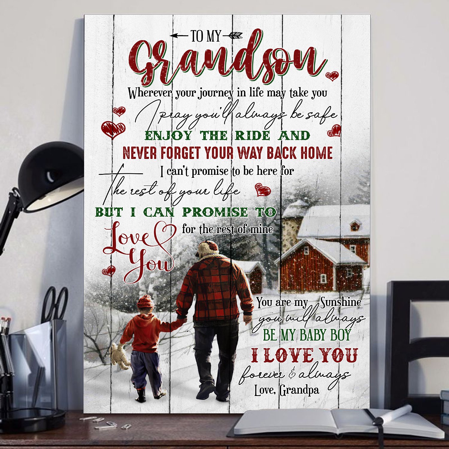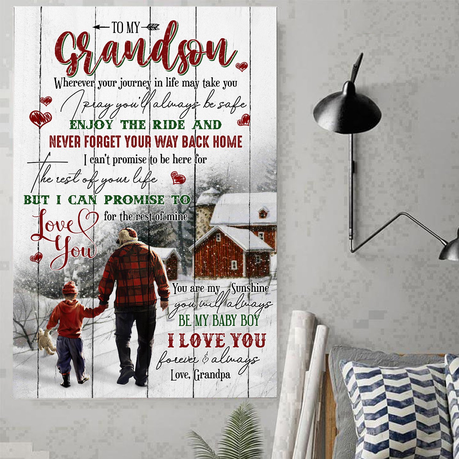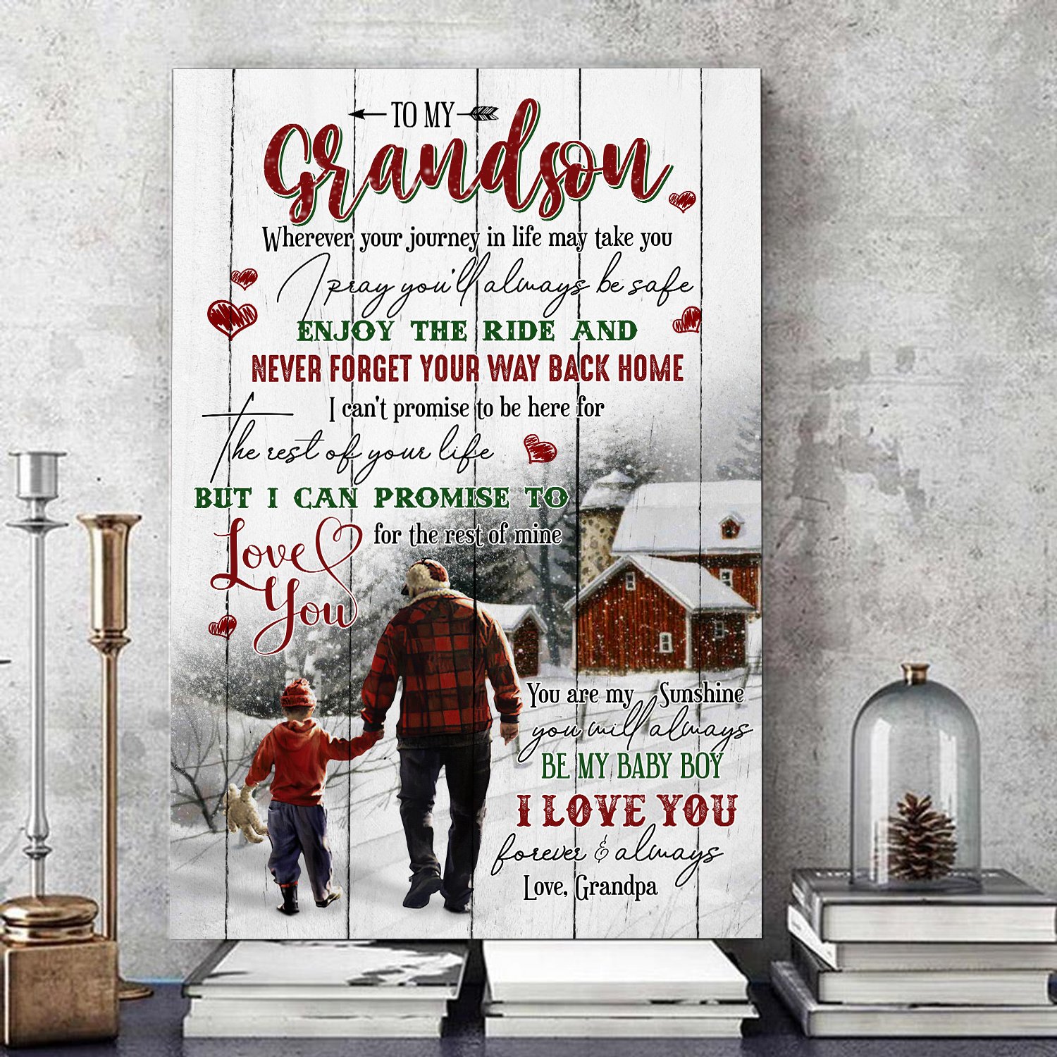Awesome Family Gift For Grandson From Grandpa – Wherever Your Journey In Life May Take You I Pray You’ll Always Be Safe. Enjoy The Ride And Never Forget Your Way Back Home Poster