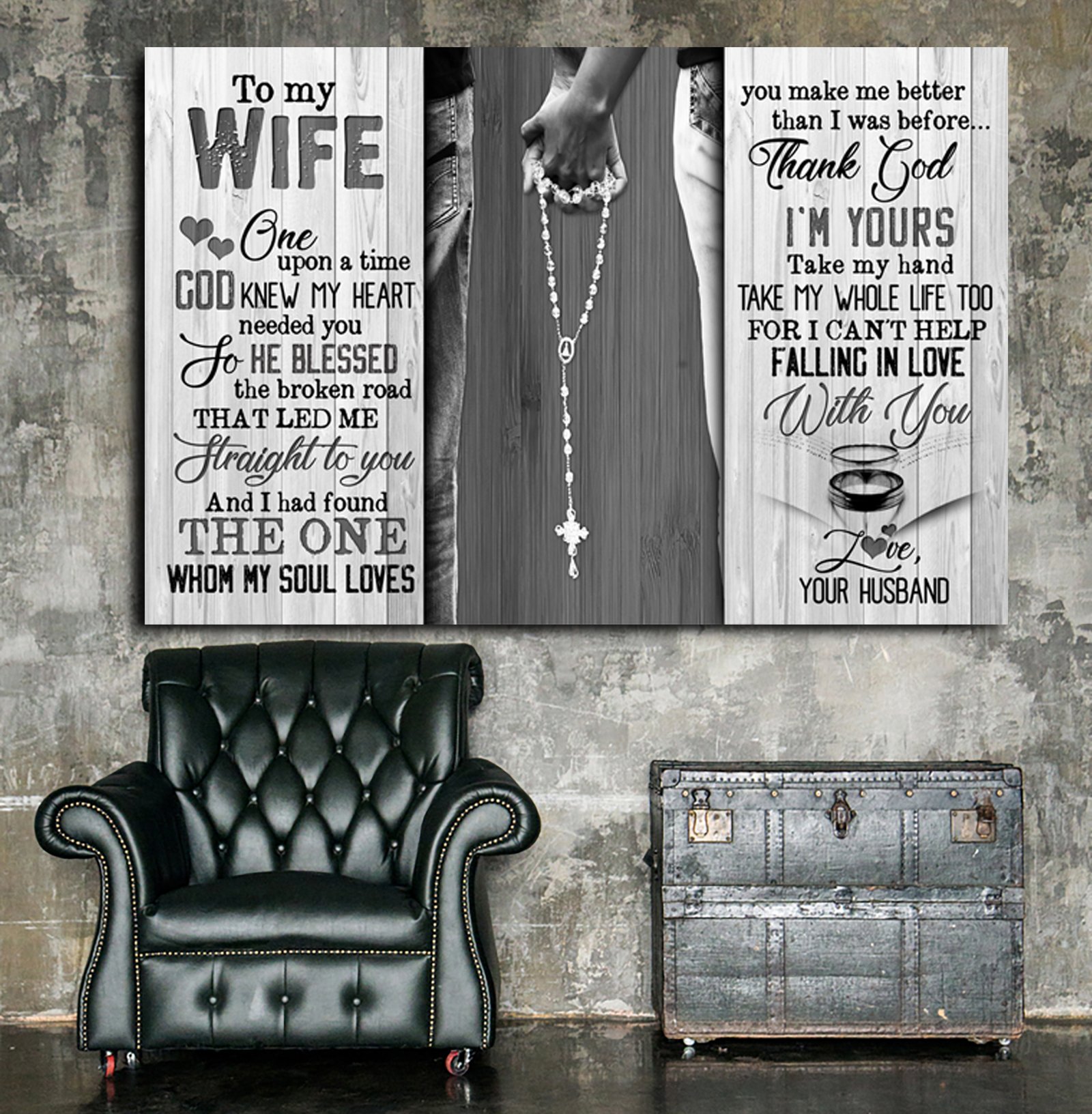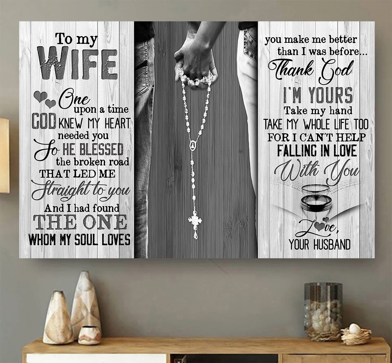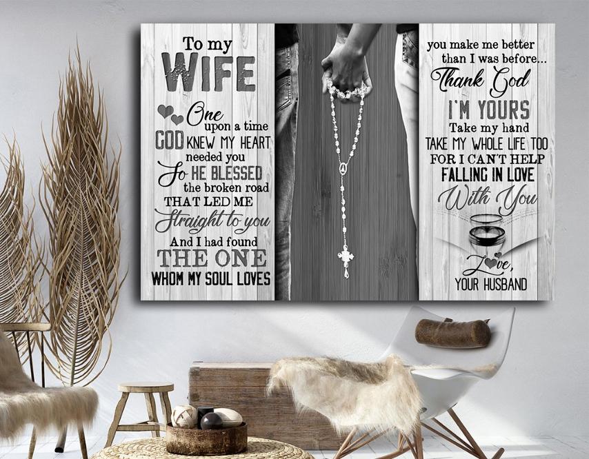 Awesome Family Gift For Wife – Hand In Hand – Once Upon A Time God Knew My Heart Needed You So He Blessed The Broken Road That Led Me Straight To You And I Had Found The One Whom My Soul Loves You Make Me Better Than I Was Before… Thank God Poster