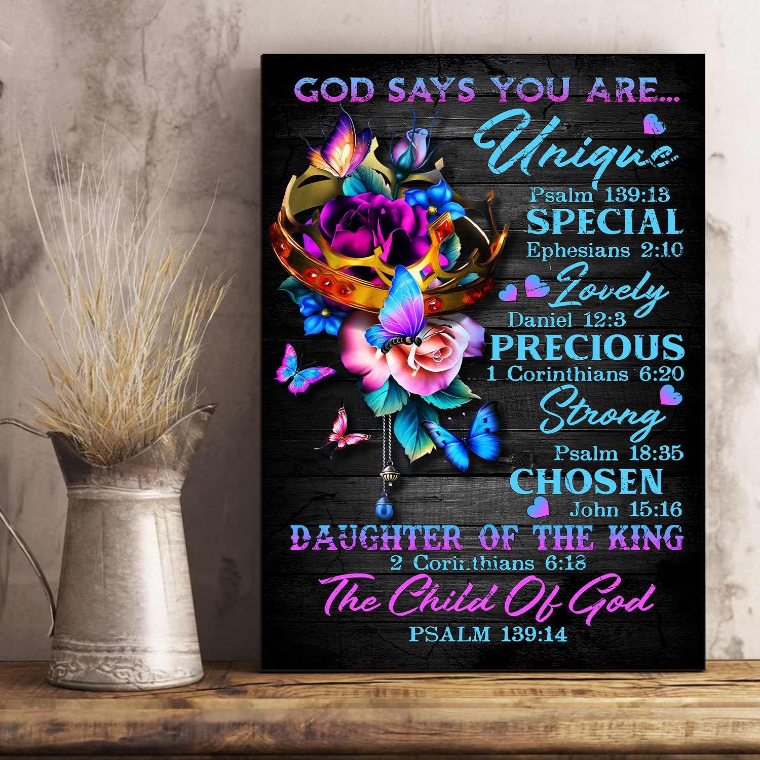 Awesome Family Gift – God – God Says You Are – Unique, Special, Lovely, Precious, Strong, Chosen, Daughter Of the King, The Child of God Poster