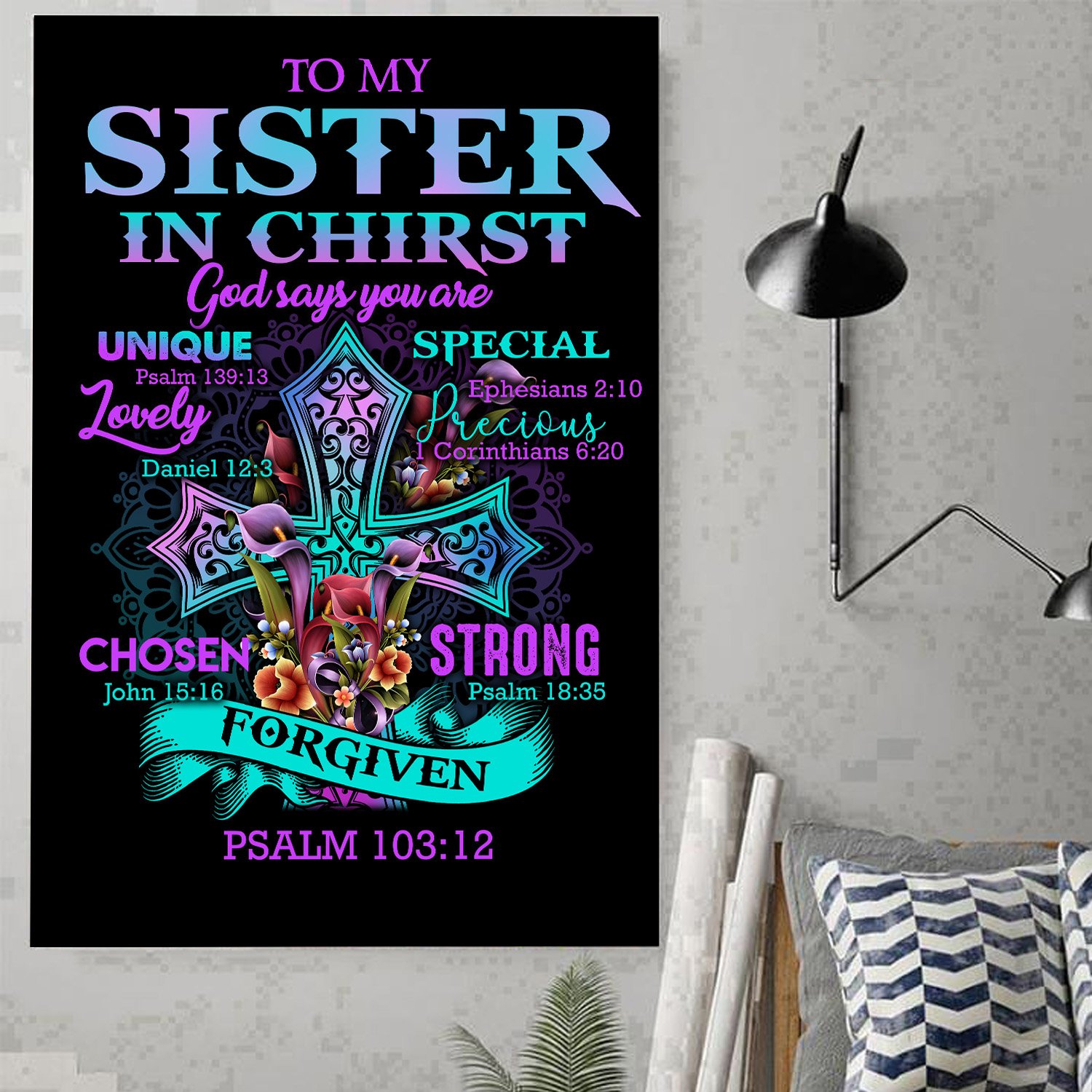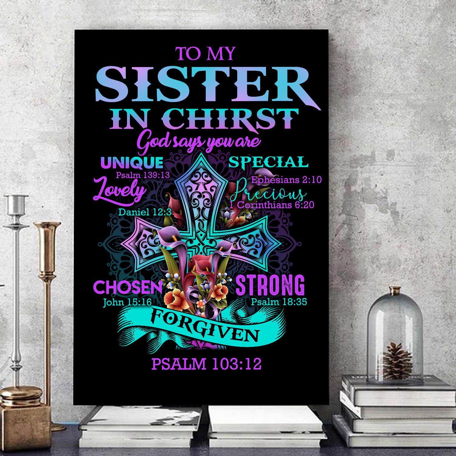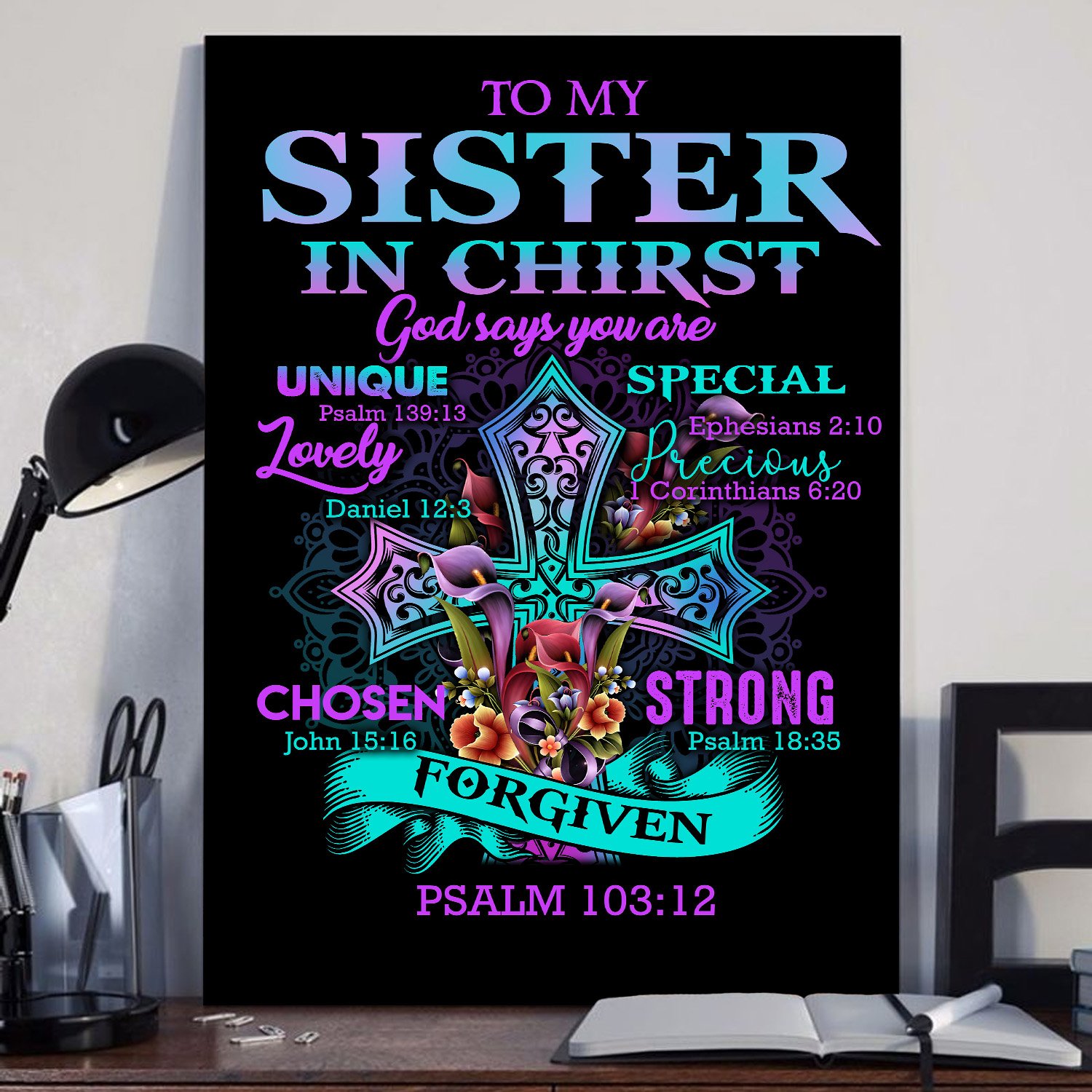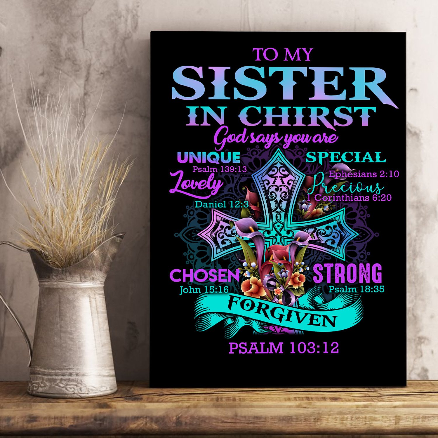 Awesome Family Gift – God – To My Sister In Christ – God Says You Are Unique, Special, Lovely, Precious, Strong, Chosen, Forgiven Poster