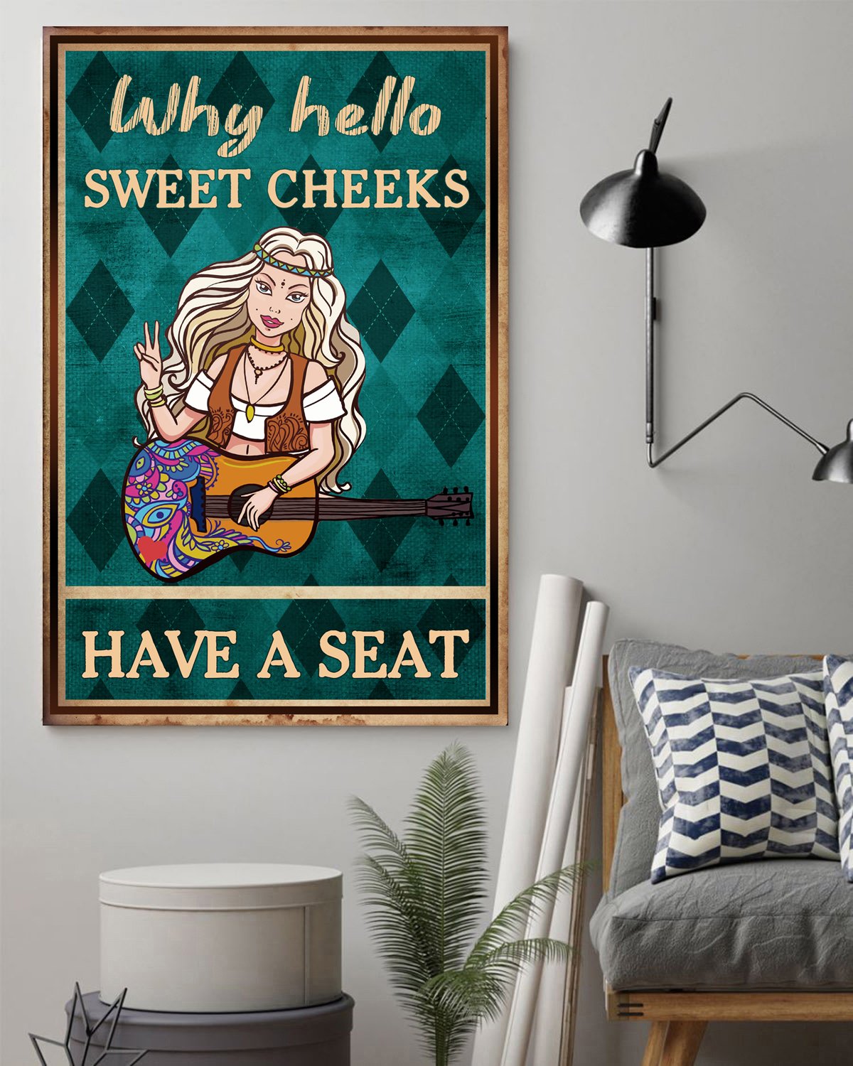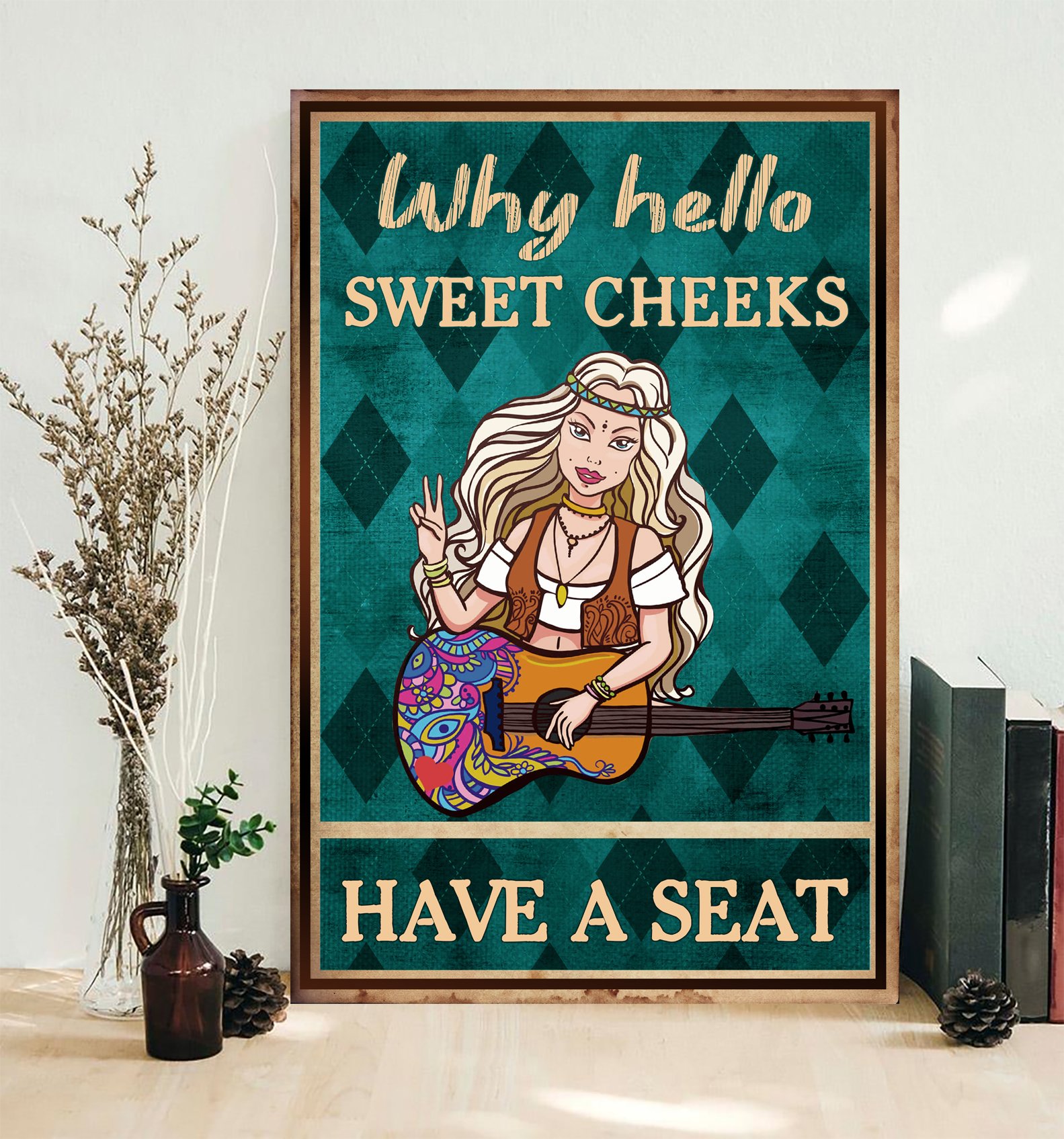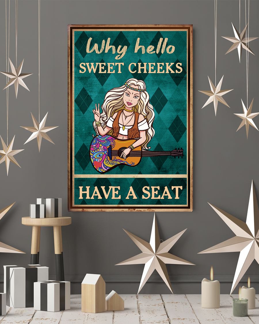 Awesome Family Gift – Humorous Bathroom Wall Art – Hippie – Why Hello Sweet Cheeks Have A Seat Poster