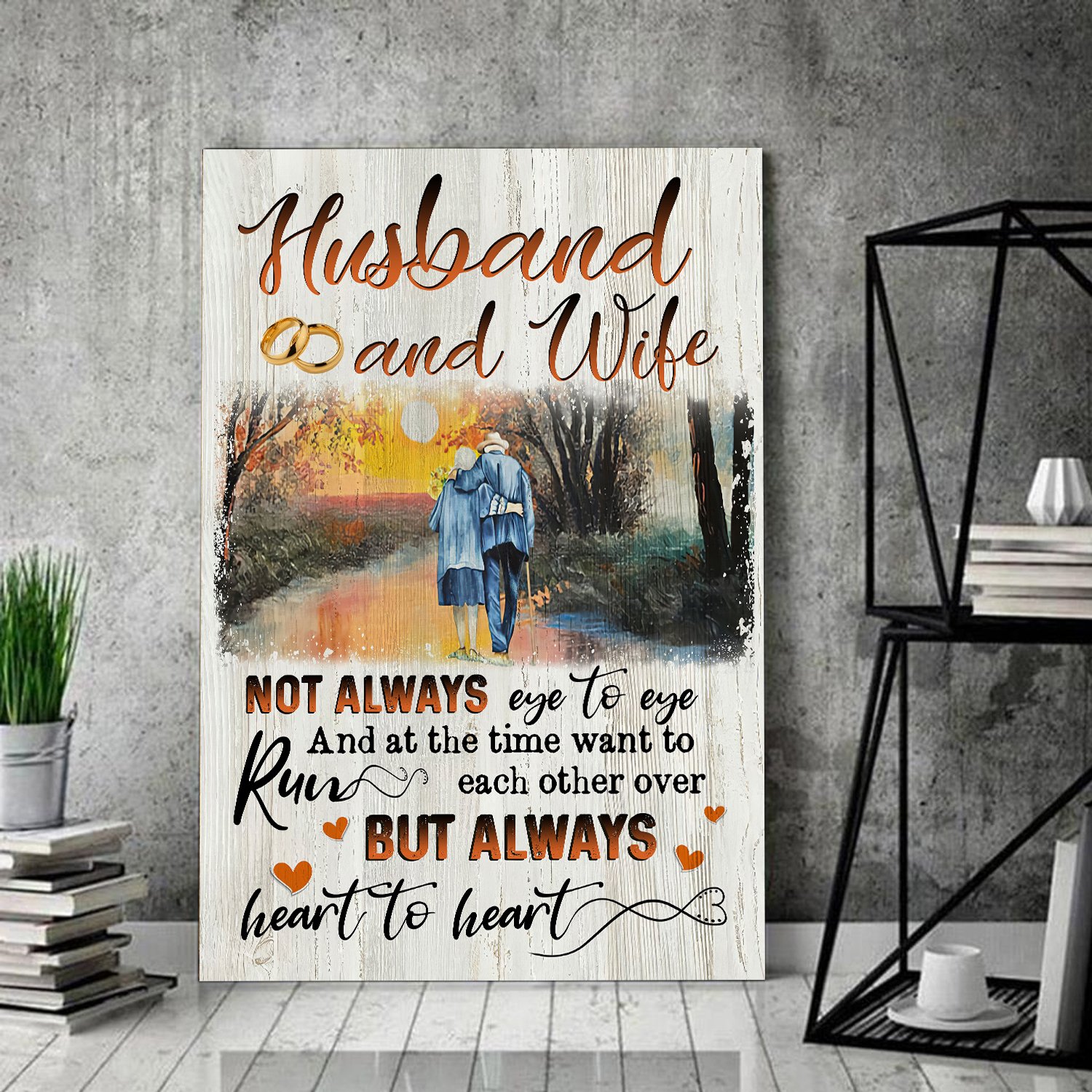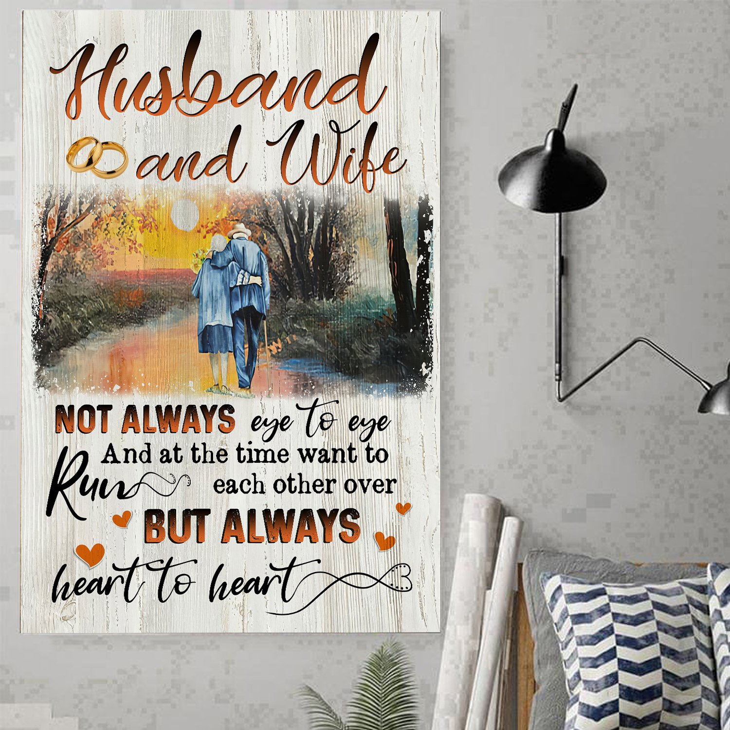 Awesome Family Gift – Husband And Wife – Not Always Eye To Eye And At The Time Want To Run Each Other Over, But Always Heart To Heart Poster