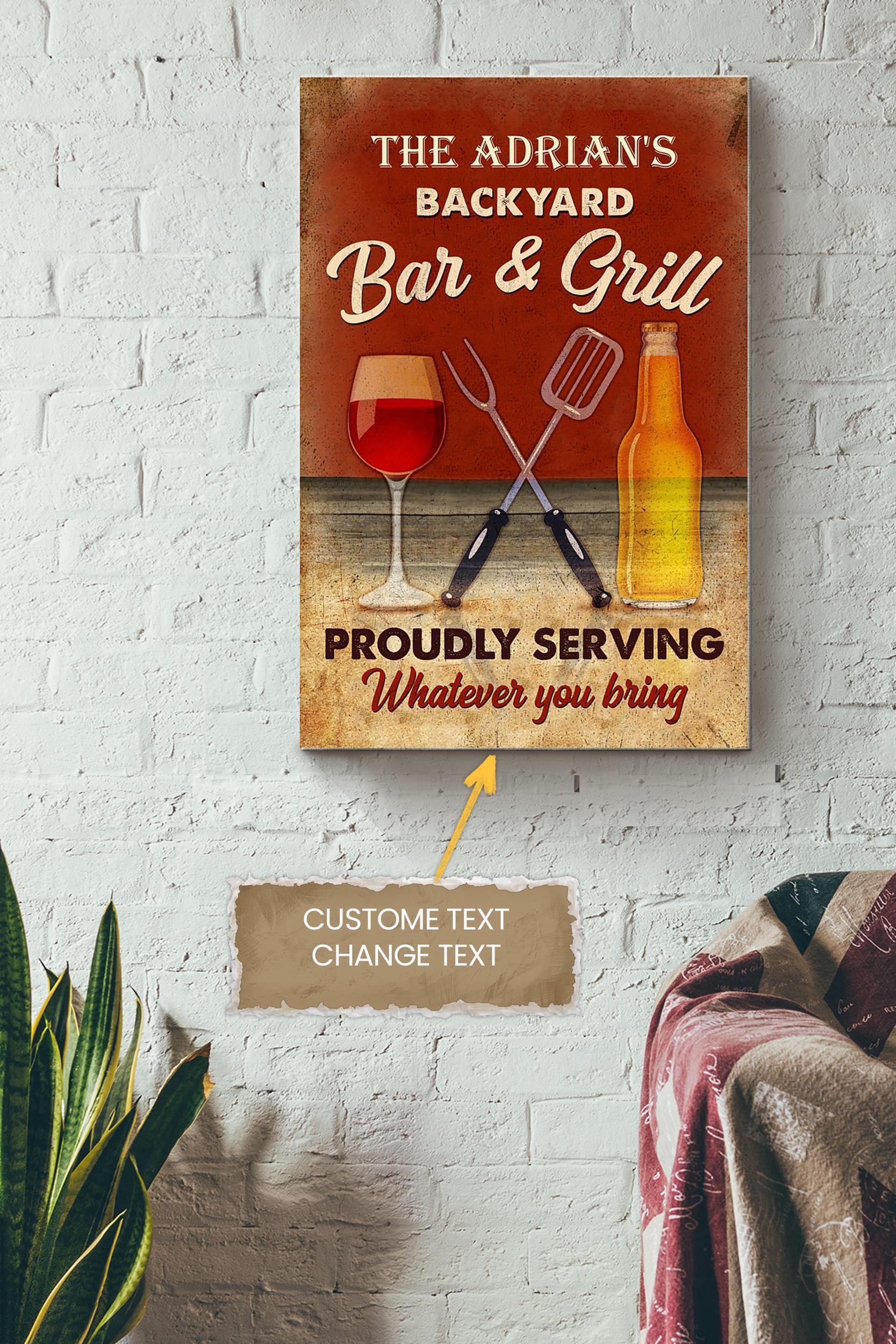 Bar And Grill Personalized Poster – Decor Wall Art – Gift For Bar Decor Bbq Party Decor Party Decor Wine Lover Wrapped Canvas
