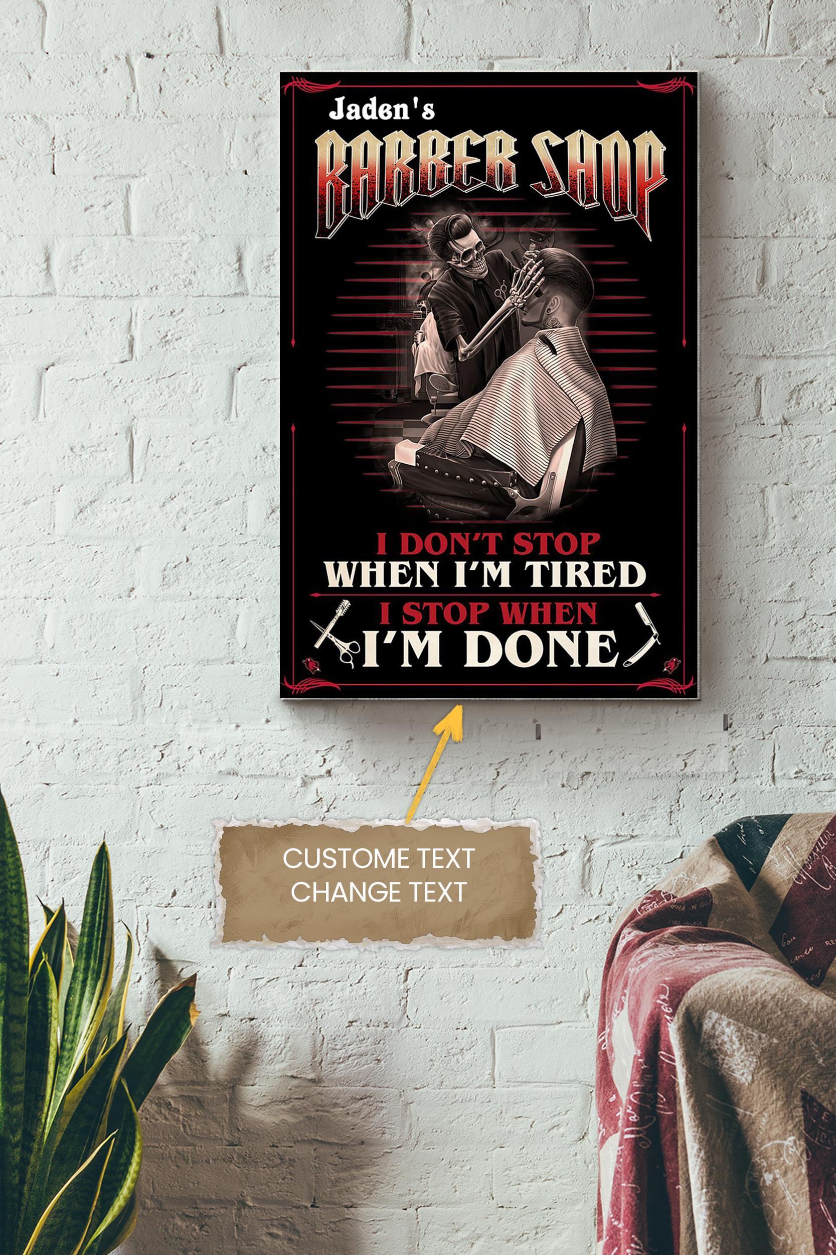 Barber Shop I Dont Stop When I Tired I Stop When Im Done Personalized Poster – Decor Wall Art – Gift For Barber Decor Hairdresser Wrapped Canvas