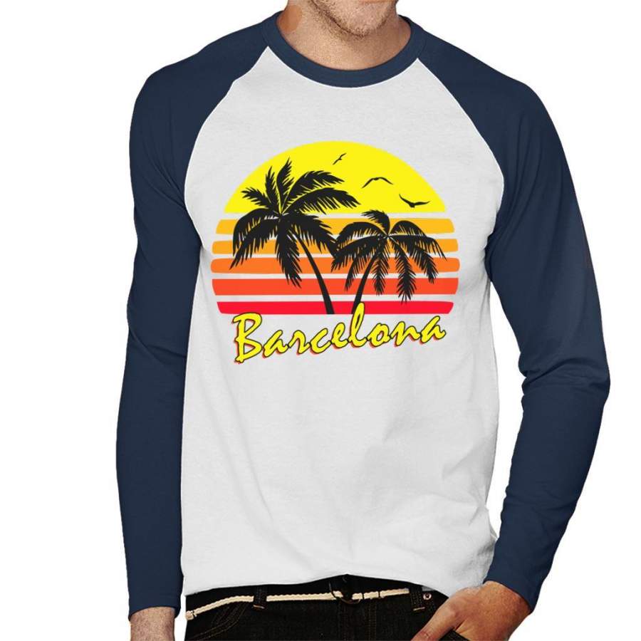 Barcelona Vintage Sun Men’s Baseball Long Sleeved T-Shirt