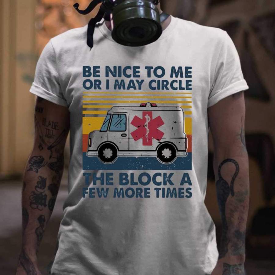 Be Nice To Me Or I May Circle The Block A Few More Times Medical Ambulance Vintage Retro T-shirt