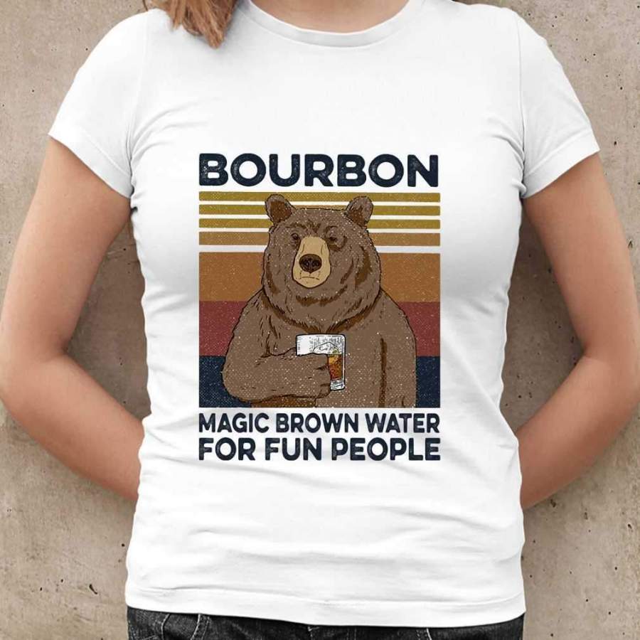 Bear Bourbon Magic Brown Water For Fun People Vintage Retro T-shirt