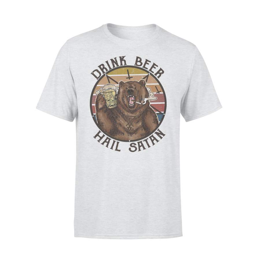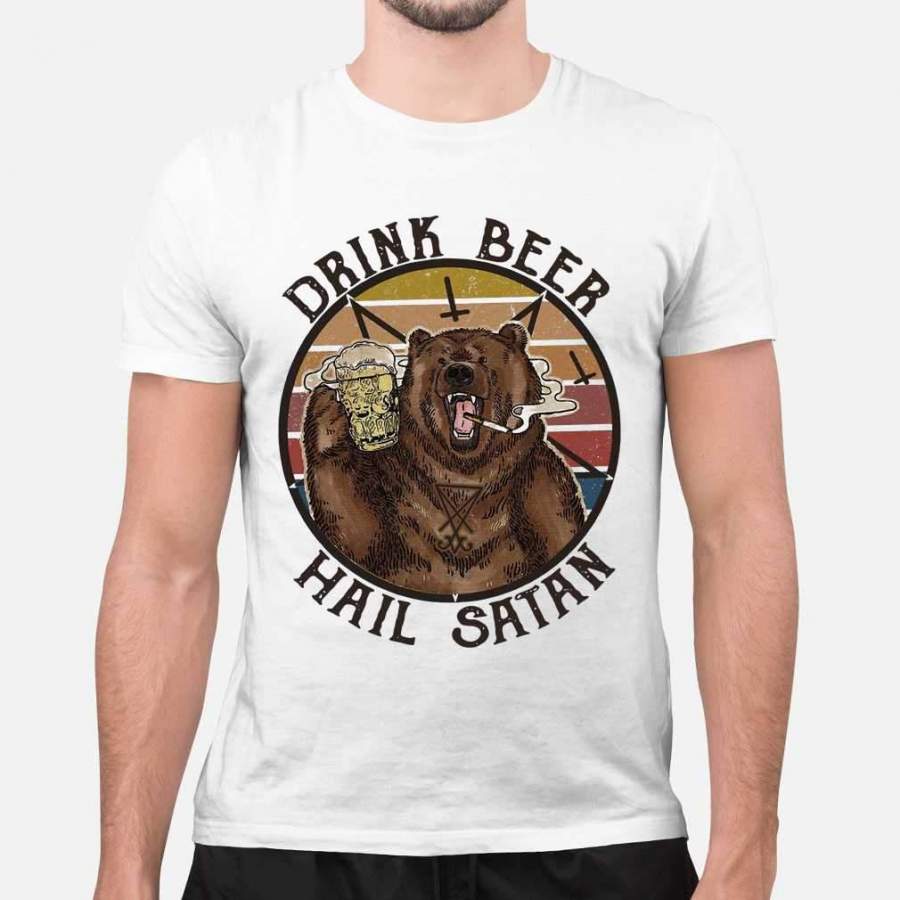 Bear Drink Beer Hail Satan Vintage T-shirt