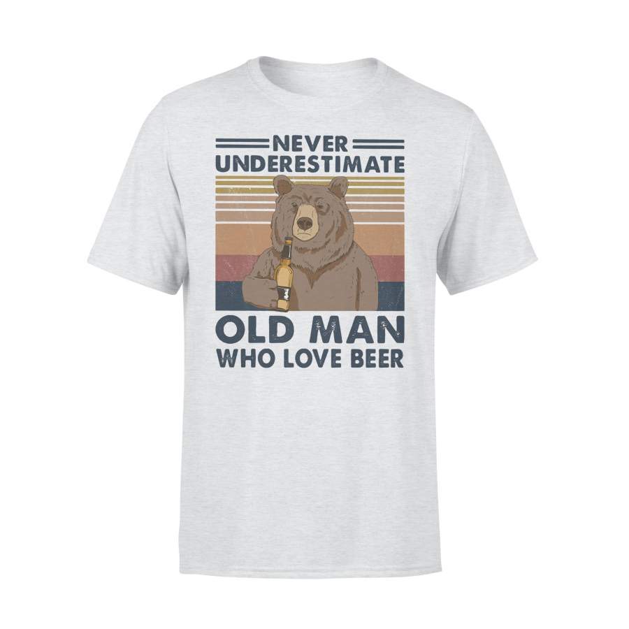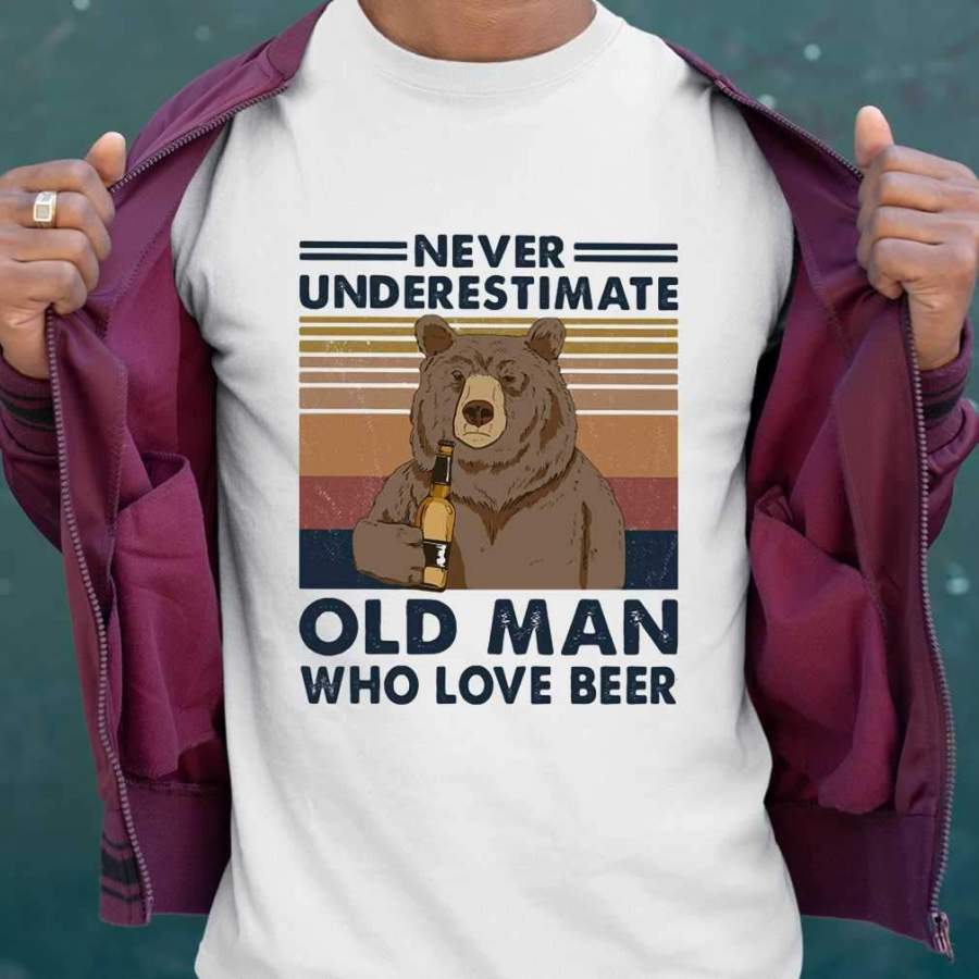 Bear Drinking Never Underestimate An Old Man Who Love Beer Vintage Retro T-shirt