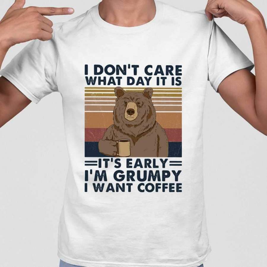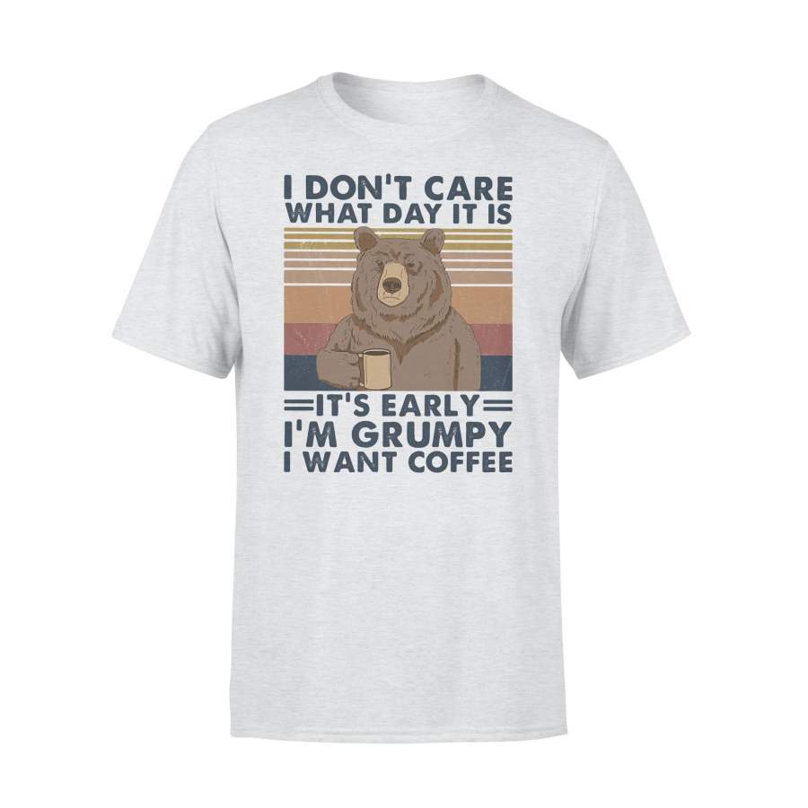 Bear I Don’t Care It’s Early I’m Grumpy I Want Coffee Vintage Retro T-shirt