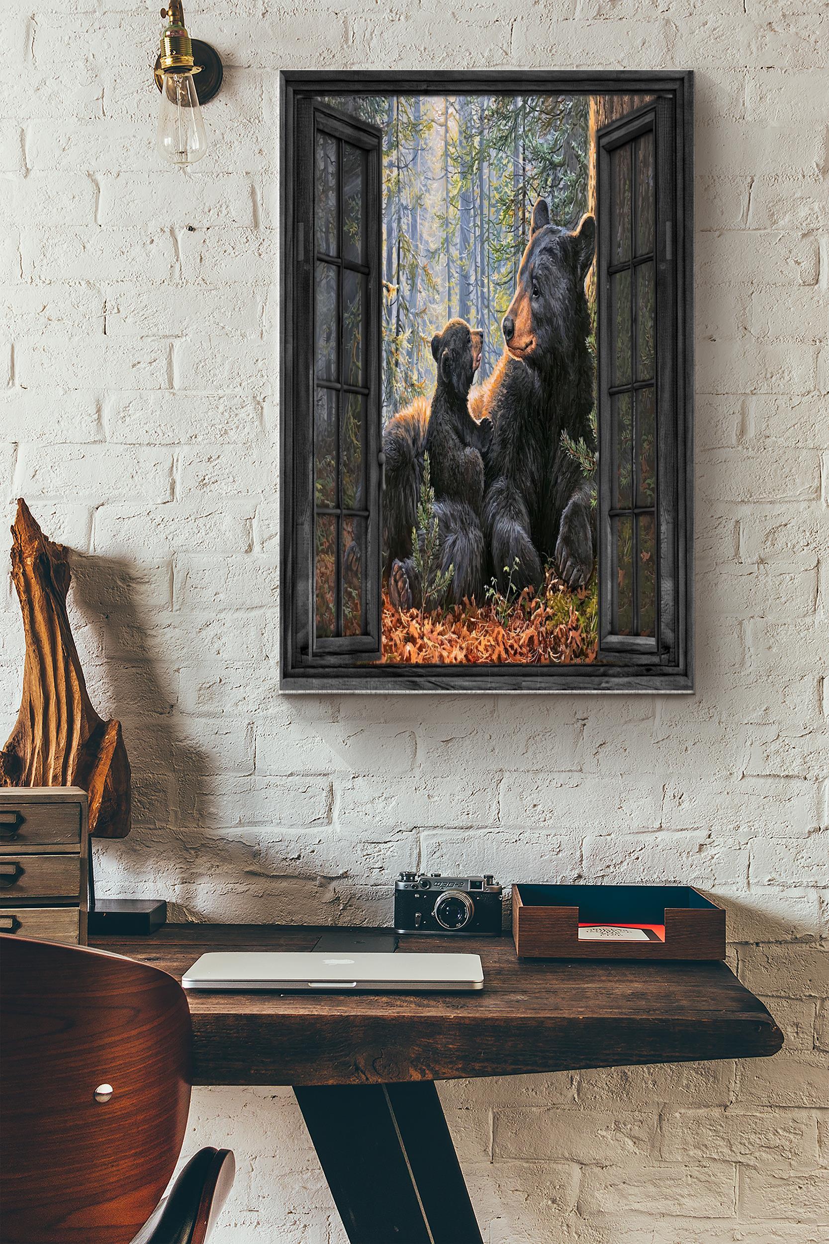 Bear Window Poster – Animal Wall Art – Gift For Livingroom Decor, Bear Lover, Wild Animal Protection Association Wrapped Canvas