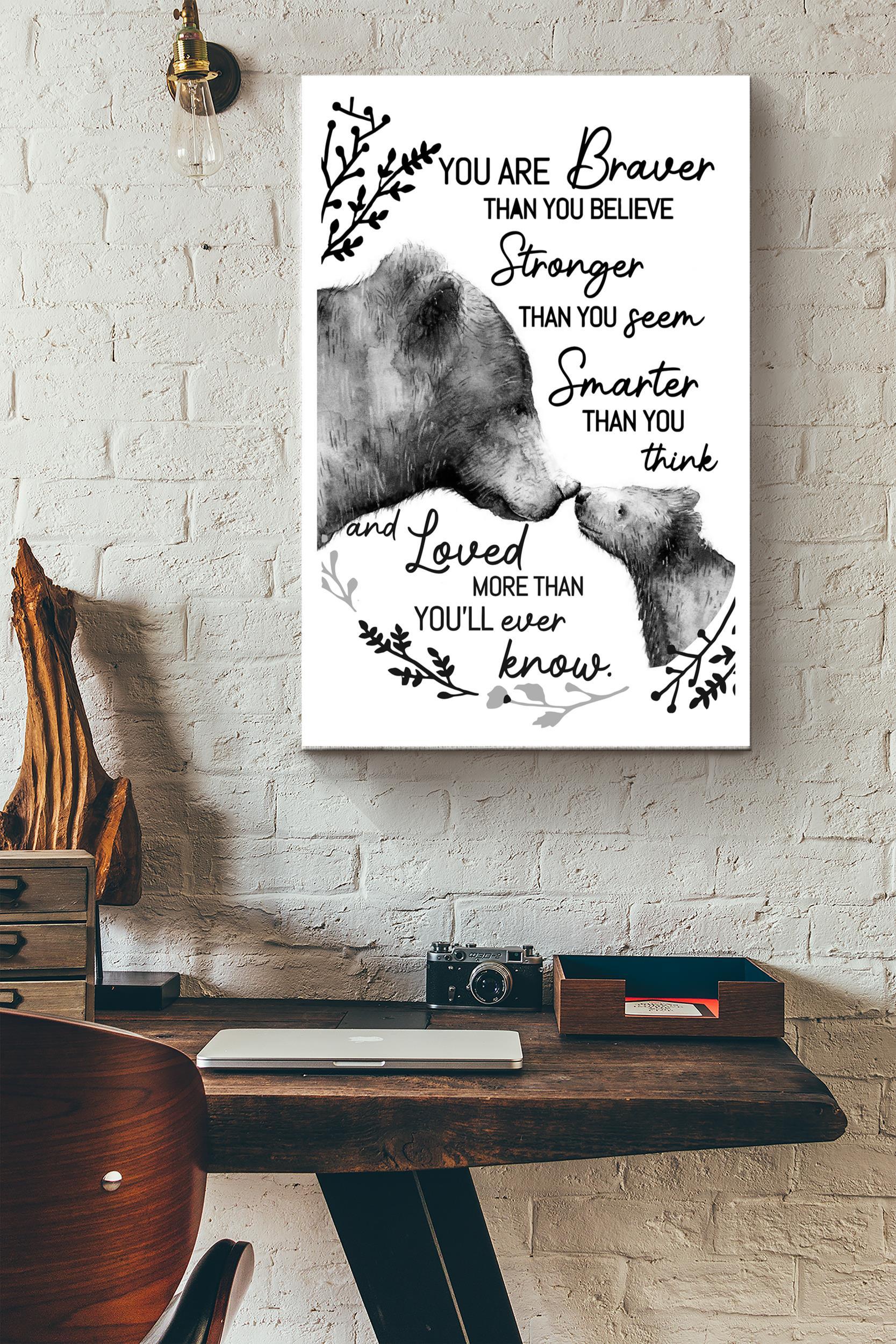 Bear You Are Braver Than You Believe Poster – Animal Wall Art – Gift For Father’S Day, Mother’S Day, Daughter, Son Wrapped Canvas