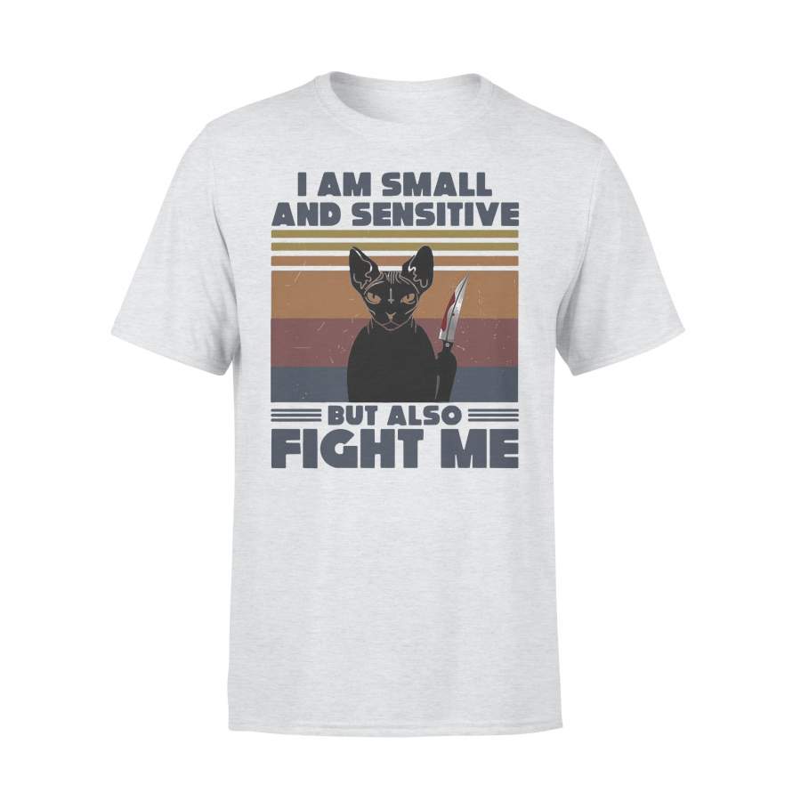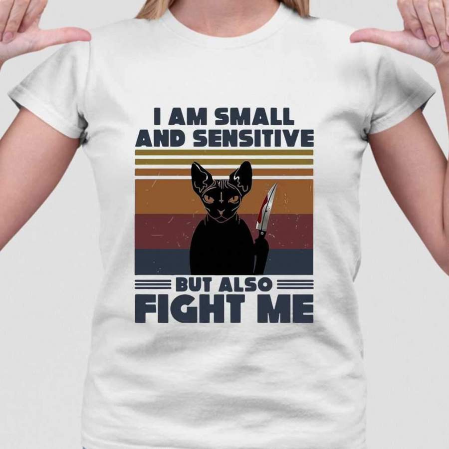 Black Cat I Am Small And Sensitive But Also Fight Me Halloween Vintage Retro T-shirt