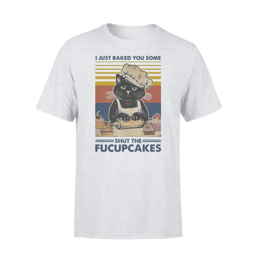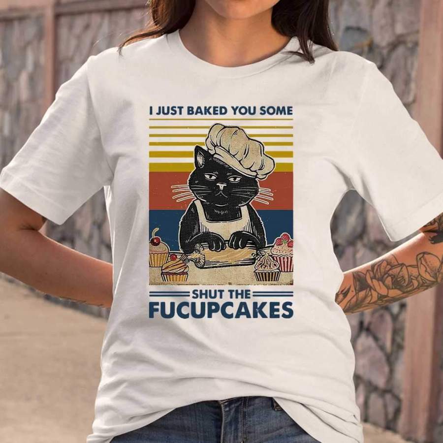 Black Cat I Just Baked You Some Shut The Fucupcakes Vintage Retro T-shirt