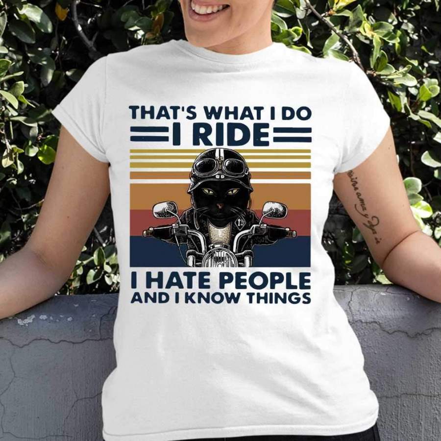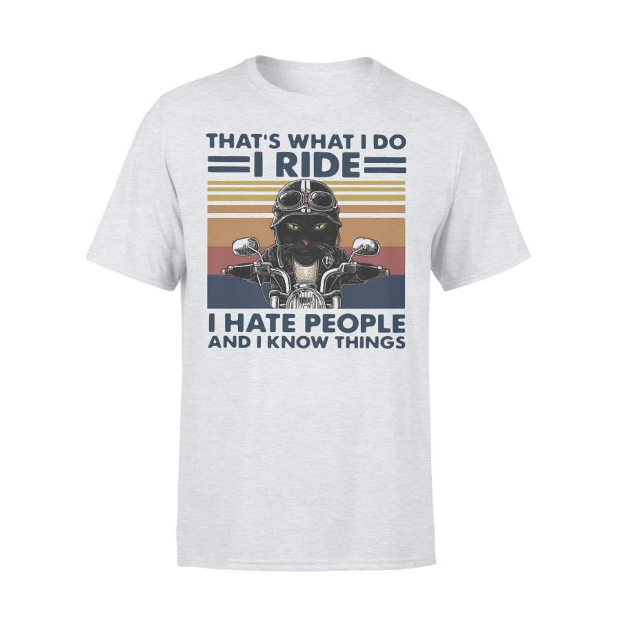 Black Cat Riding Motorcycle That’S What I Do I Ride I Hate People And I Know Things Vintage T-shirt