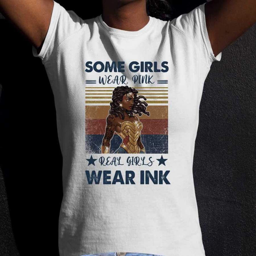 Bmacl Woman Some Girls Wear Pink Real Girl Wear Ink Vintage Retro T-shirt