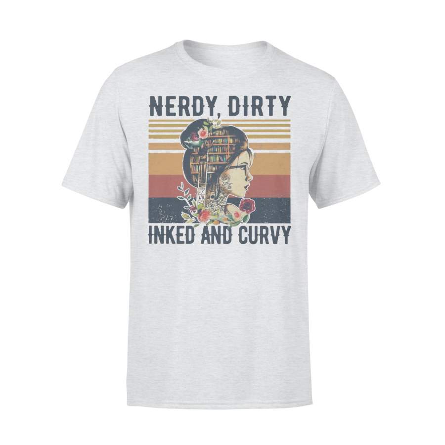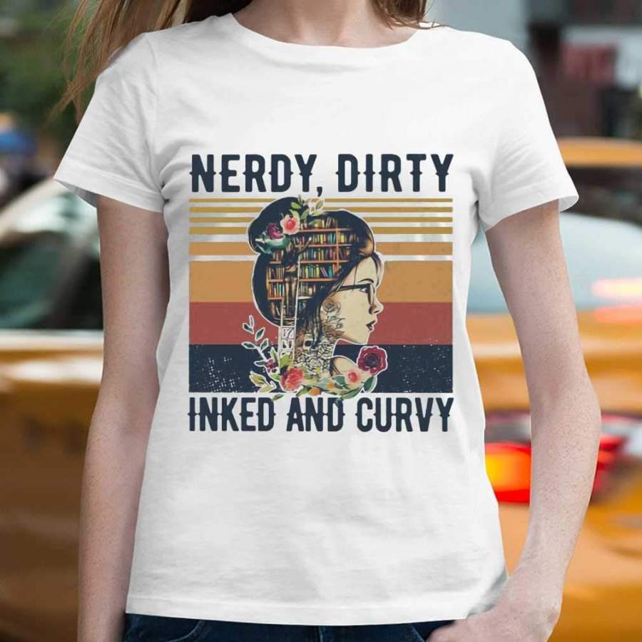 Books Nerdy Dirty Inked Curvy Vintage Reading T-shirt