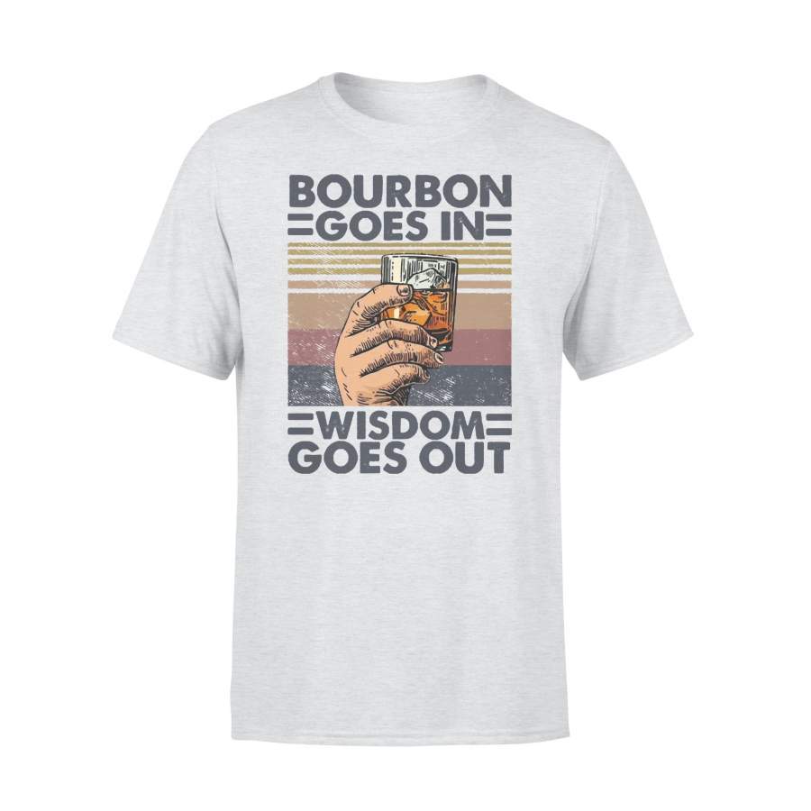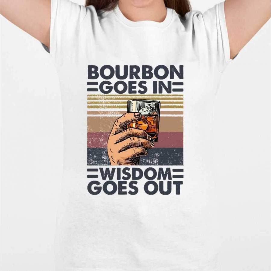 Bourbon Goes In Wisdom Goes Out Alcohol Vintage Retro T-shirt