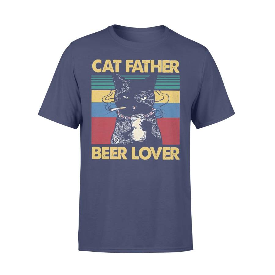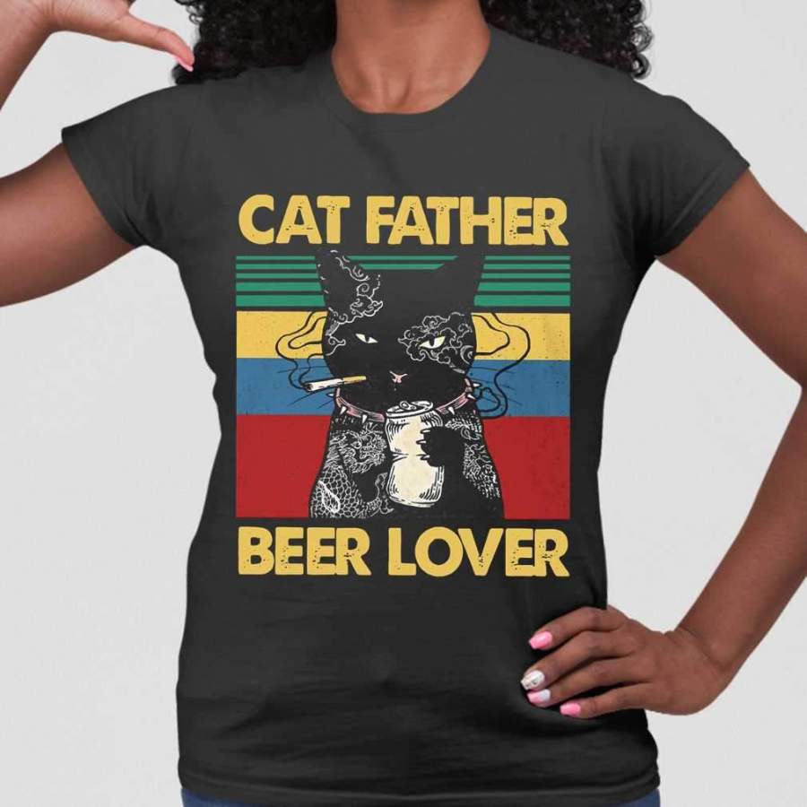 Cat Father Smoking Beer Lover Vintage Retro T-shirt
