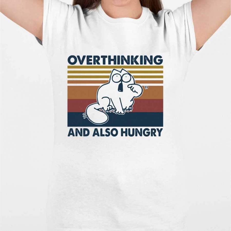 Cat Overthinking And Also Hungry Vintage Retro T-shirt