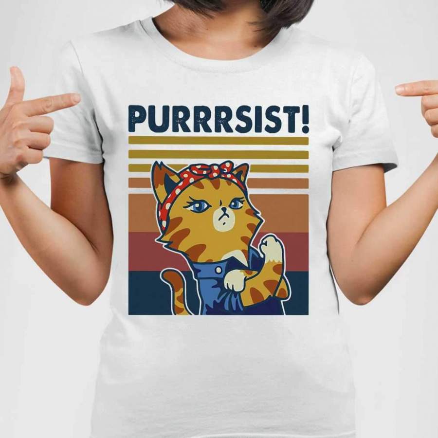 Cat Purrrsist Resist Vintage Retro T-shirt