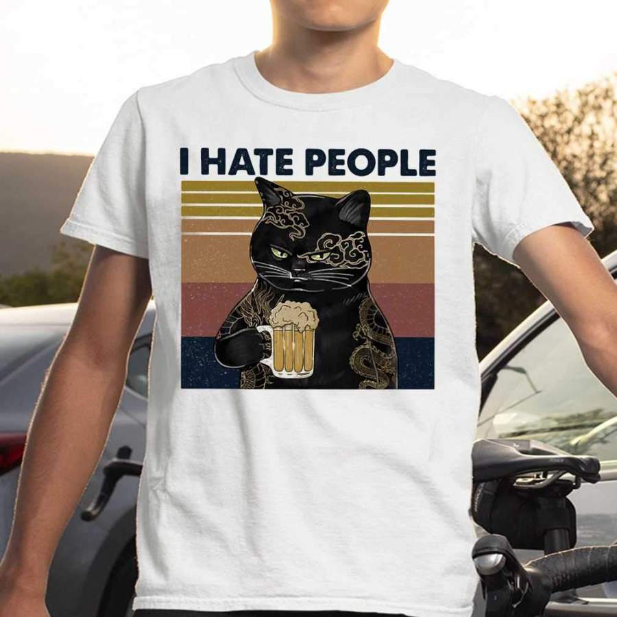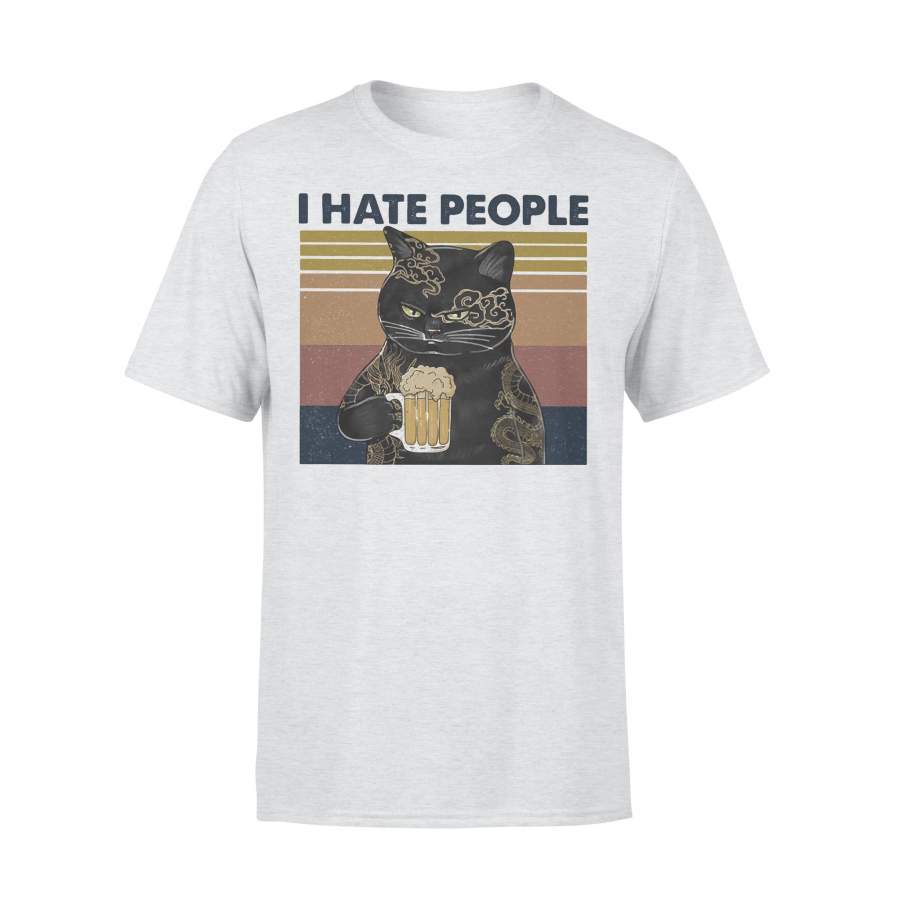 Cat Tattoo Beer I Hate People Vintage Retro T-shirt