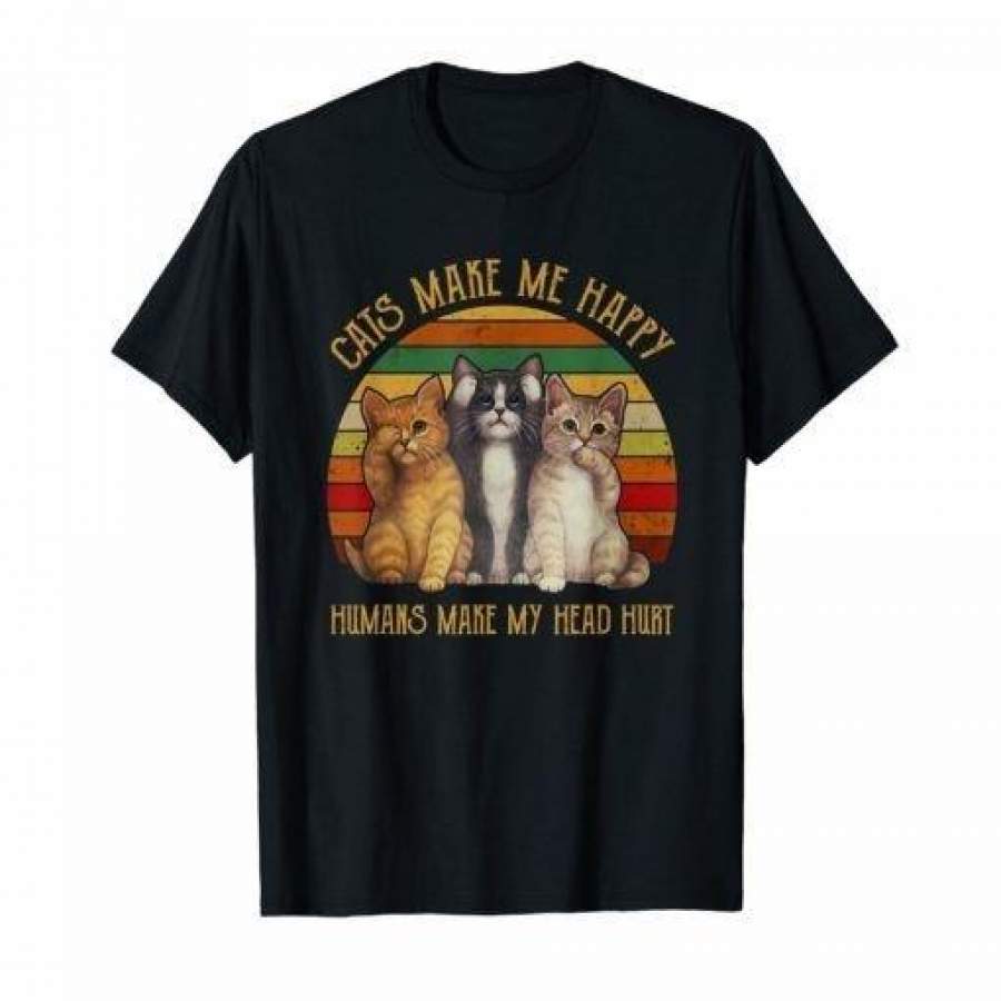 Cats make me happy humans make my head hurt vintage T-Shirt