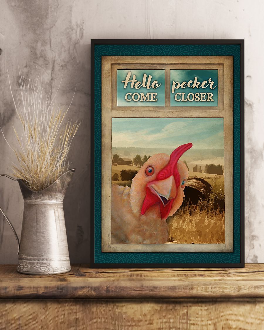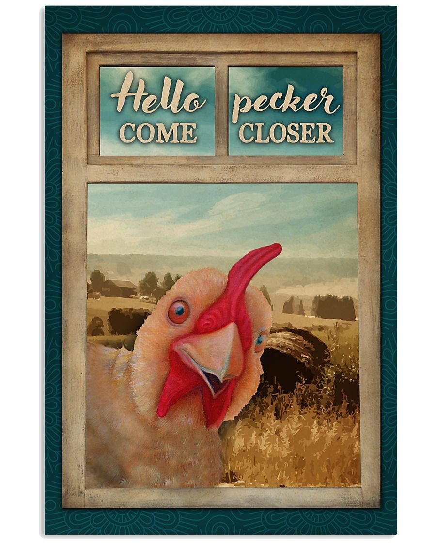 Chicken Window Hello Pecker Come Closer Vertical Poster/ Matte Canvas No Frame