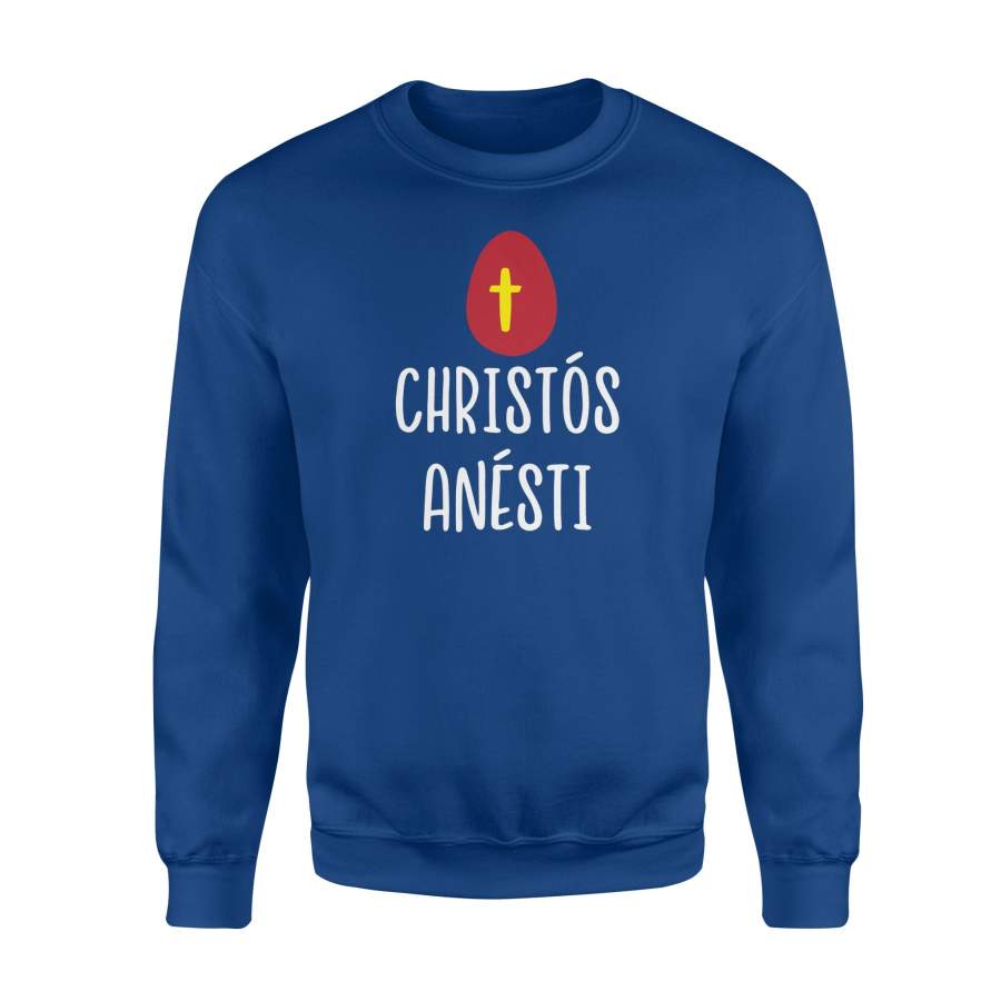 Christos Anesti Greek Easter Red Egg With Cross Sweatshirt