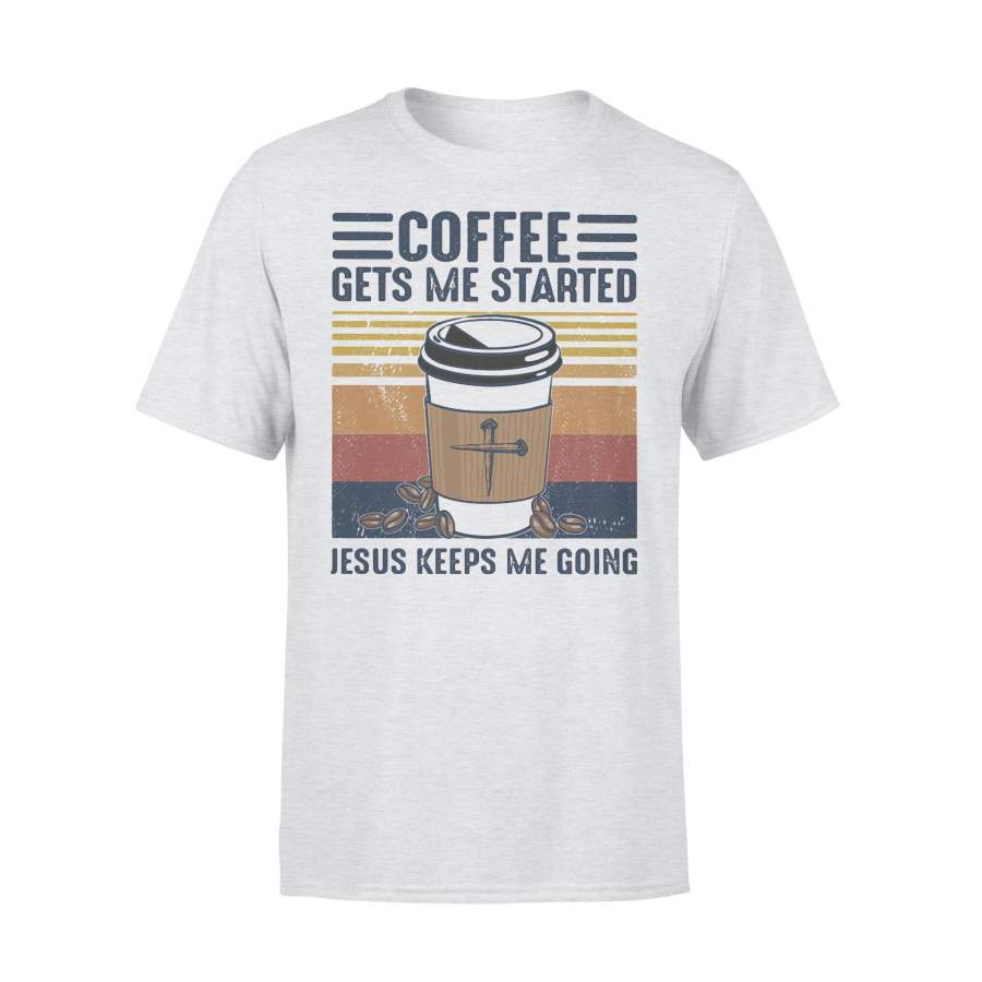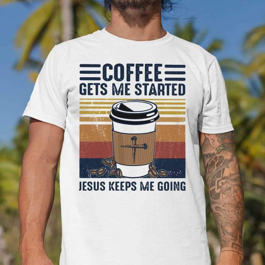 Coffee Gets Me Started Jesus Keeps Me Going Vintage Retro T-shirt