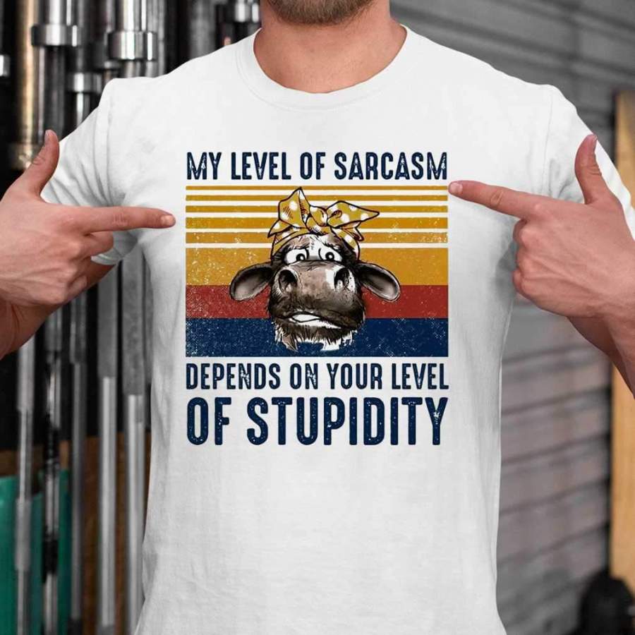 Cow My Level Of Sarcasm Depends On Your Level Of Stupidity Vintage Version T-shirt