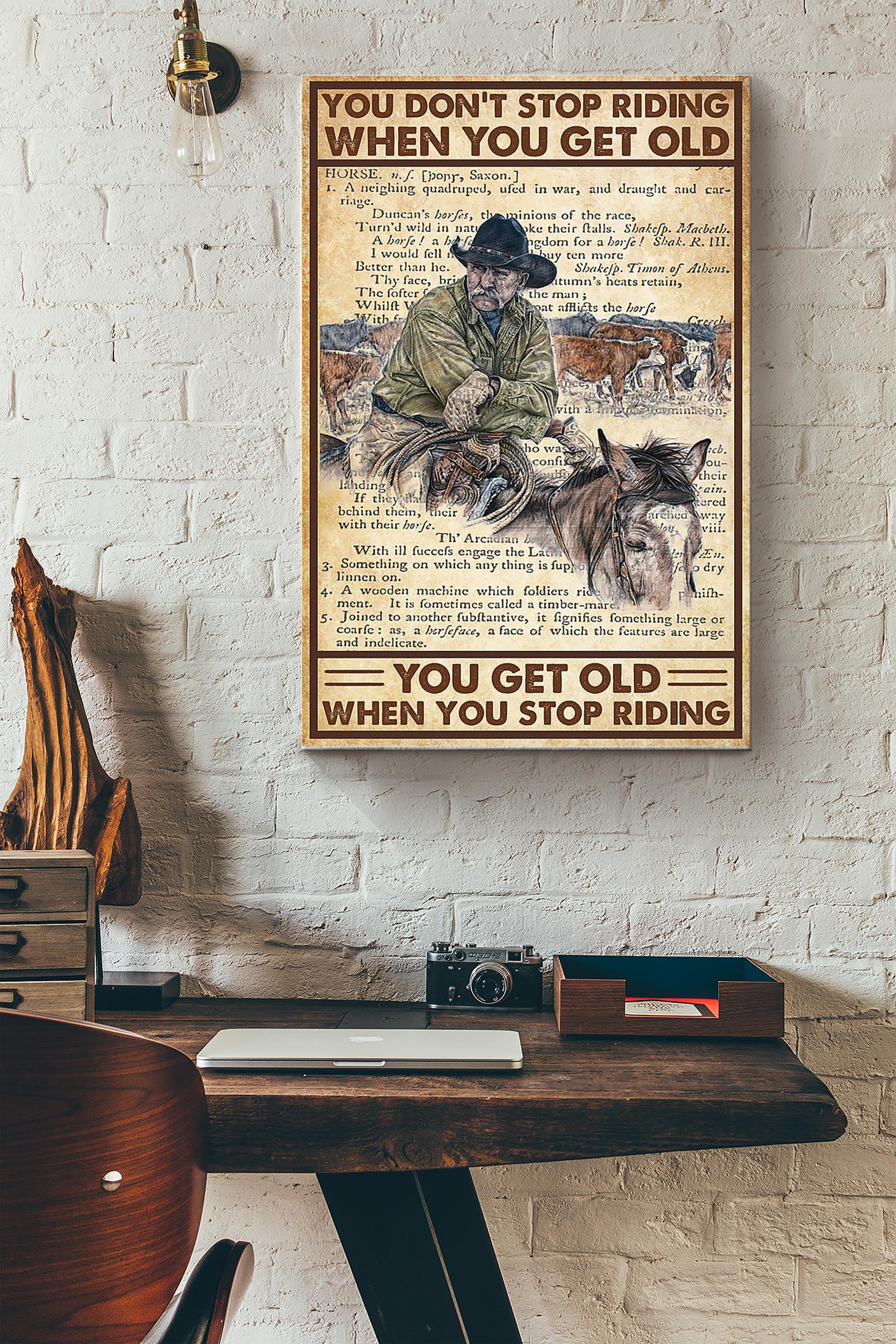 Cowboy Dont Stop Riding You Get Old Poster – Running Horse Wall Art – Gift For Horse Rider Farmhouse Decor Horseback Rider Wrapped Canvas