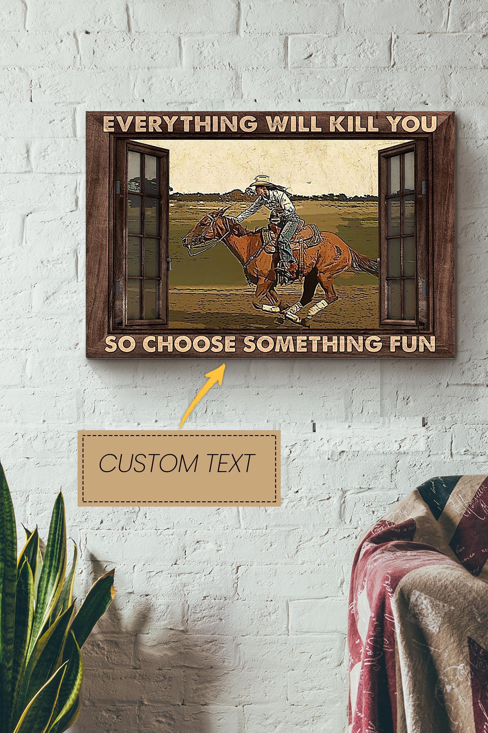 Cowboy Everything Will Kill You Ride Horse Poster – Animal Wall Art – Gift For Horse Lover Horse Rider Farmhouse Decor Wrapped Canvas