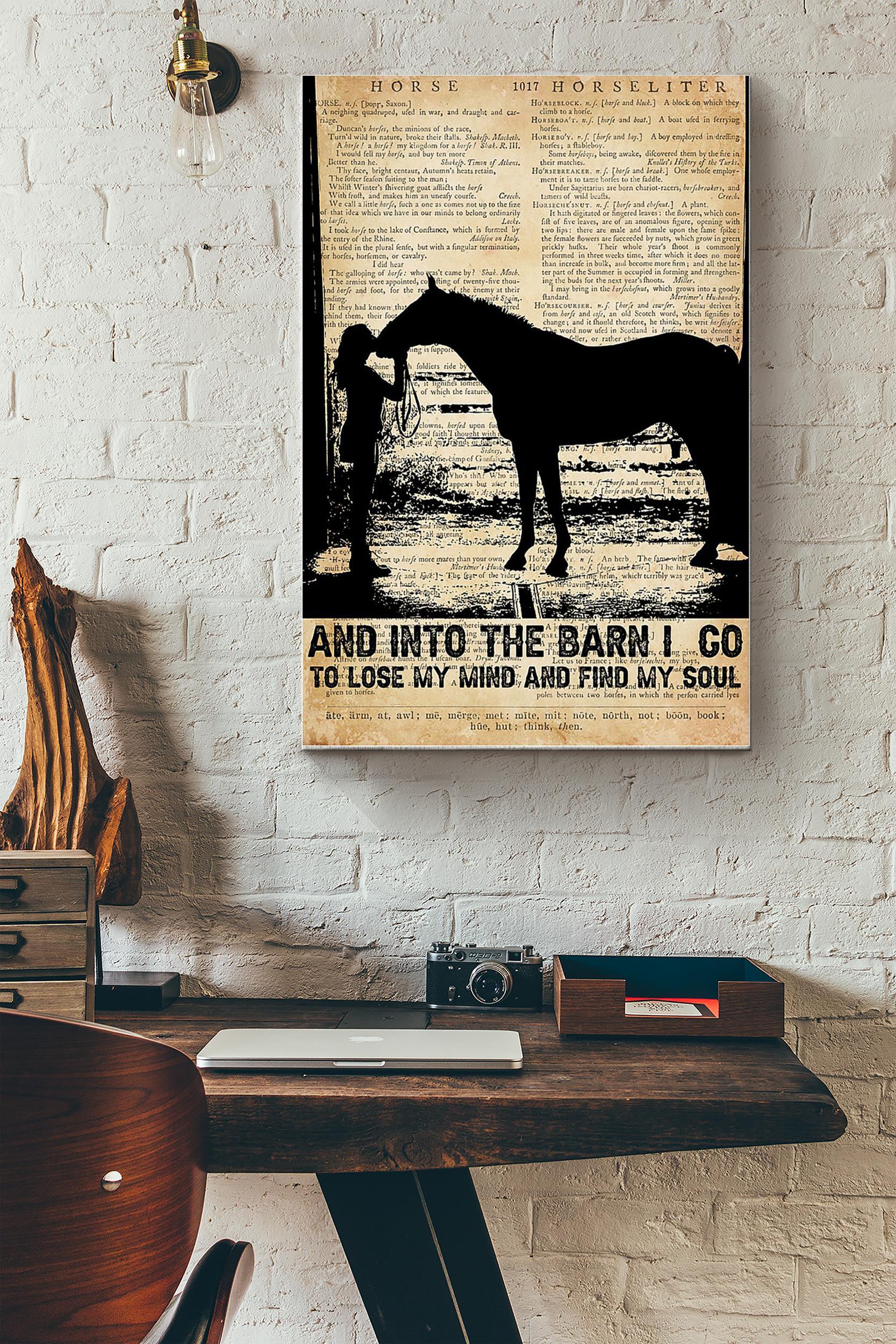 Cowgirl And Into The Barn I Go To Lose My Mind Poster – Animal Wall Art – Gift For Horse Lover Horse Rider Cowboy Farmhouse Decor Wrapped Canvas