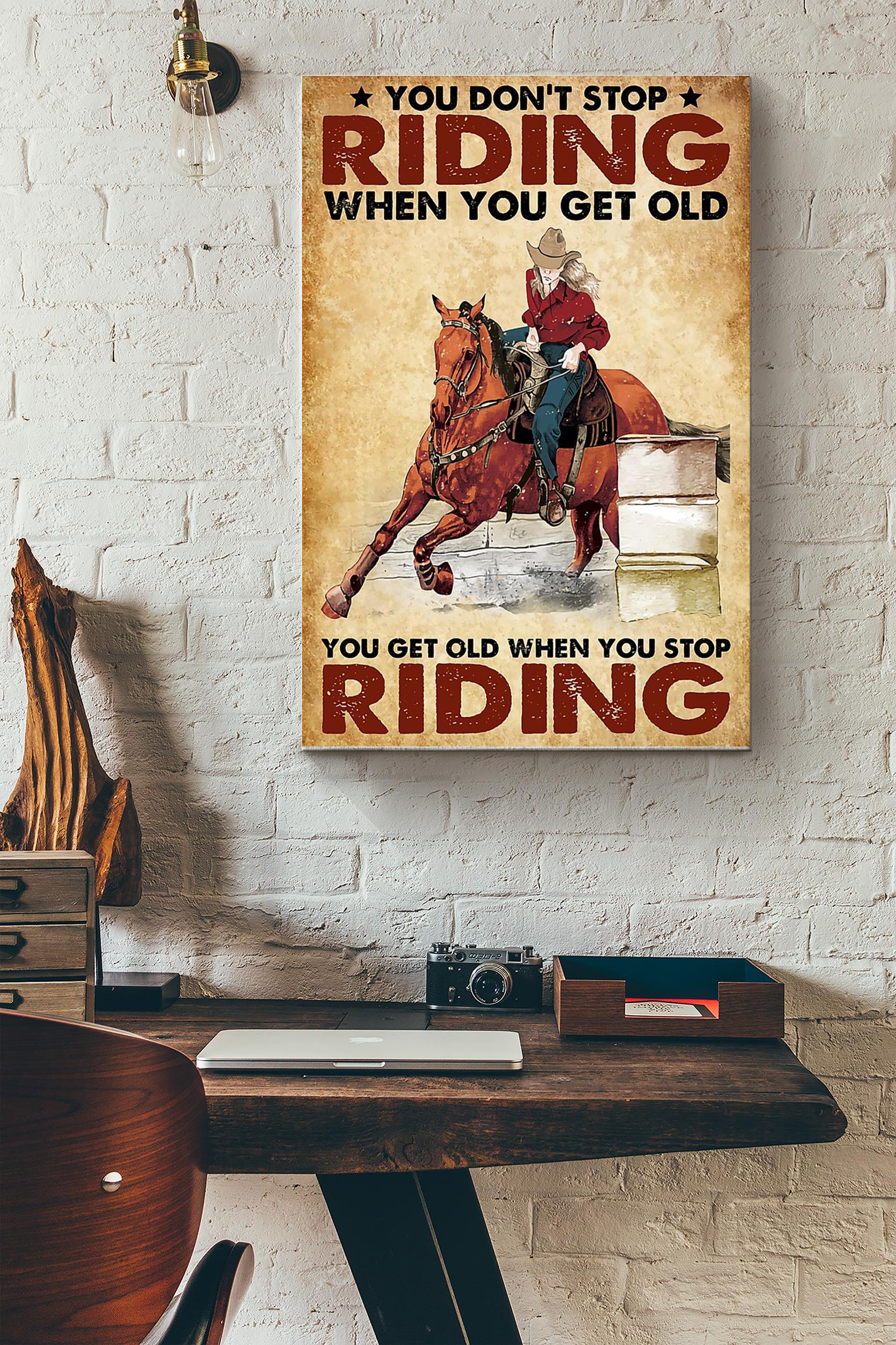 Cowgirl Don’T Stop Riding When You Get Old Poster – Running Horse Wall Art – Gift For Horse Rider Farmhouse Decor Horse Lover Wrapped Canvas