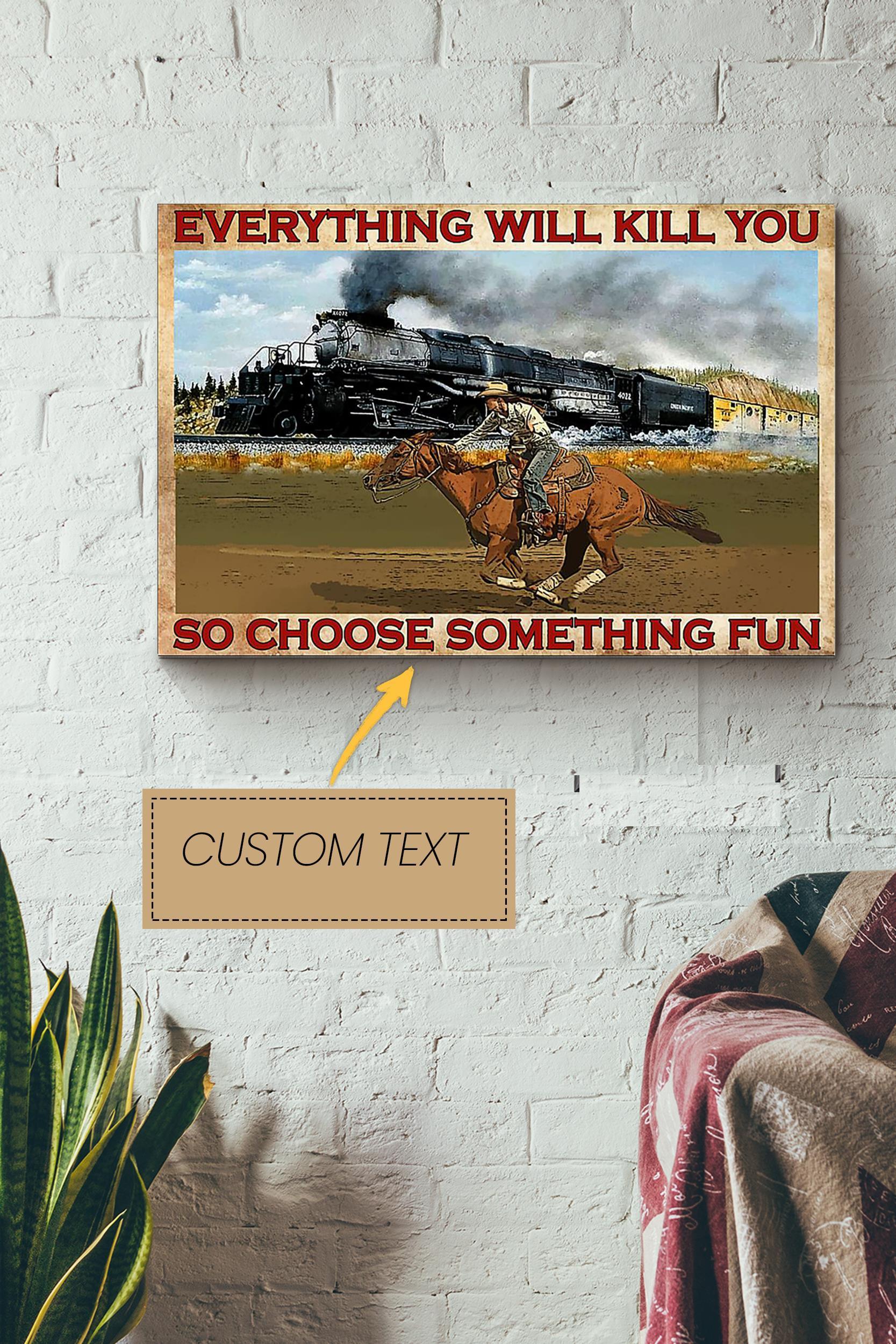 Cowgirl Everything Will Kill You Train Poster – Animal Wall Art – Gift For Horse Lover Horse Rider Cowboy Farmhouse Decor Wrapped Canvas