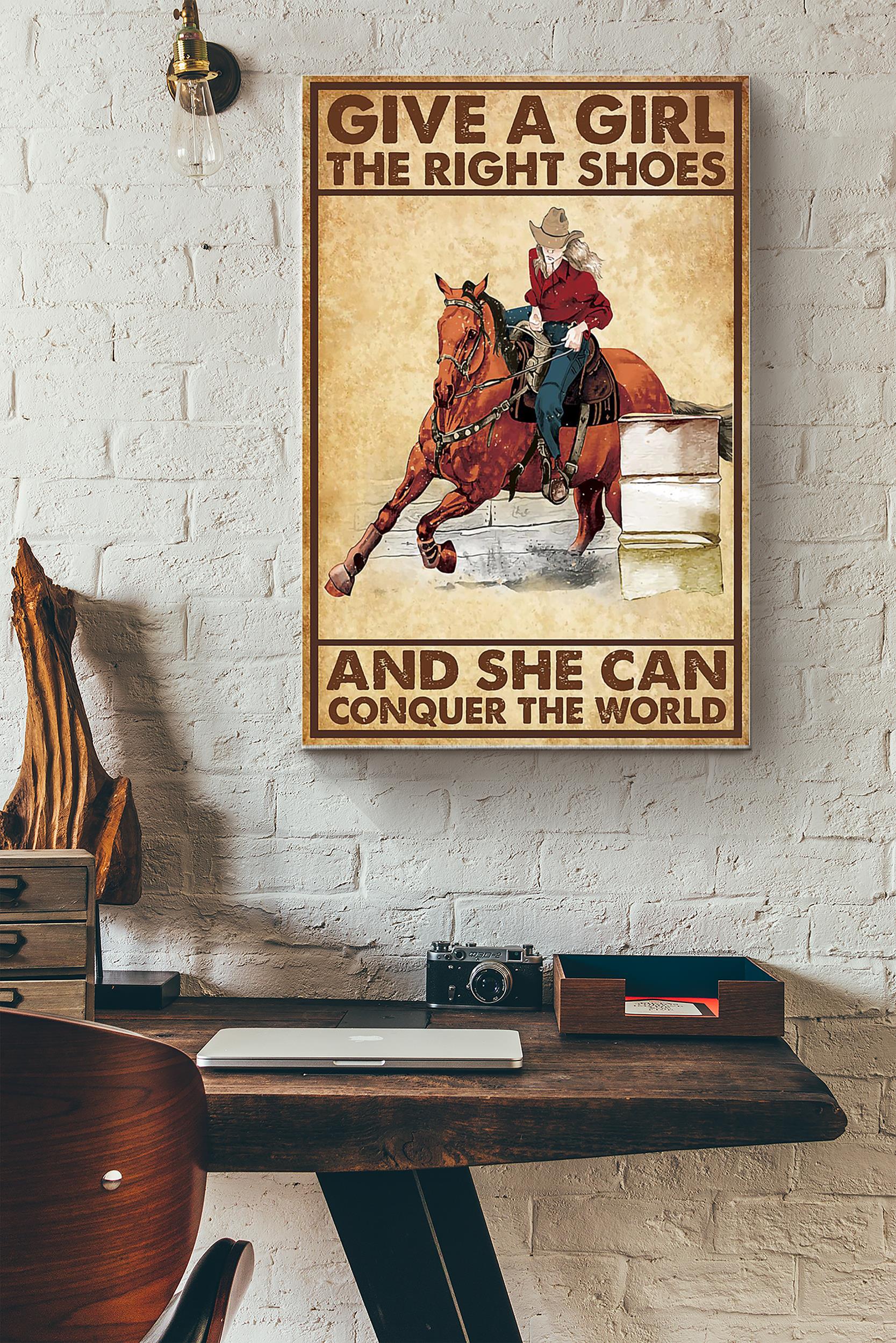 Cowgirl Give A Girl The Right Shoes Horse Poster – Animal Wall Art – Gift For Horse Lover Horse Rider Cowboy Farmhouse Decor Wrapped Canvas