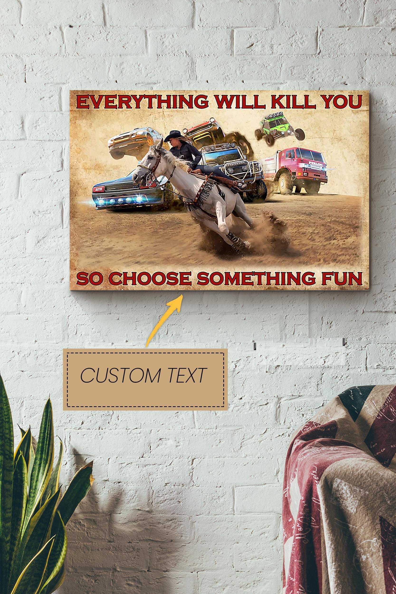 Cowgirl Horse Everything Will Kill You Poster – Animal Wall Art – Gift For Horse Lover Horse Rider Cowboy Farmhouse Decor Wrapped Canvas