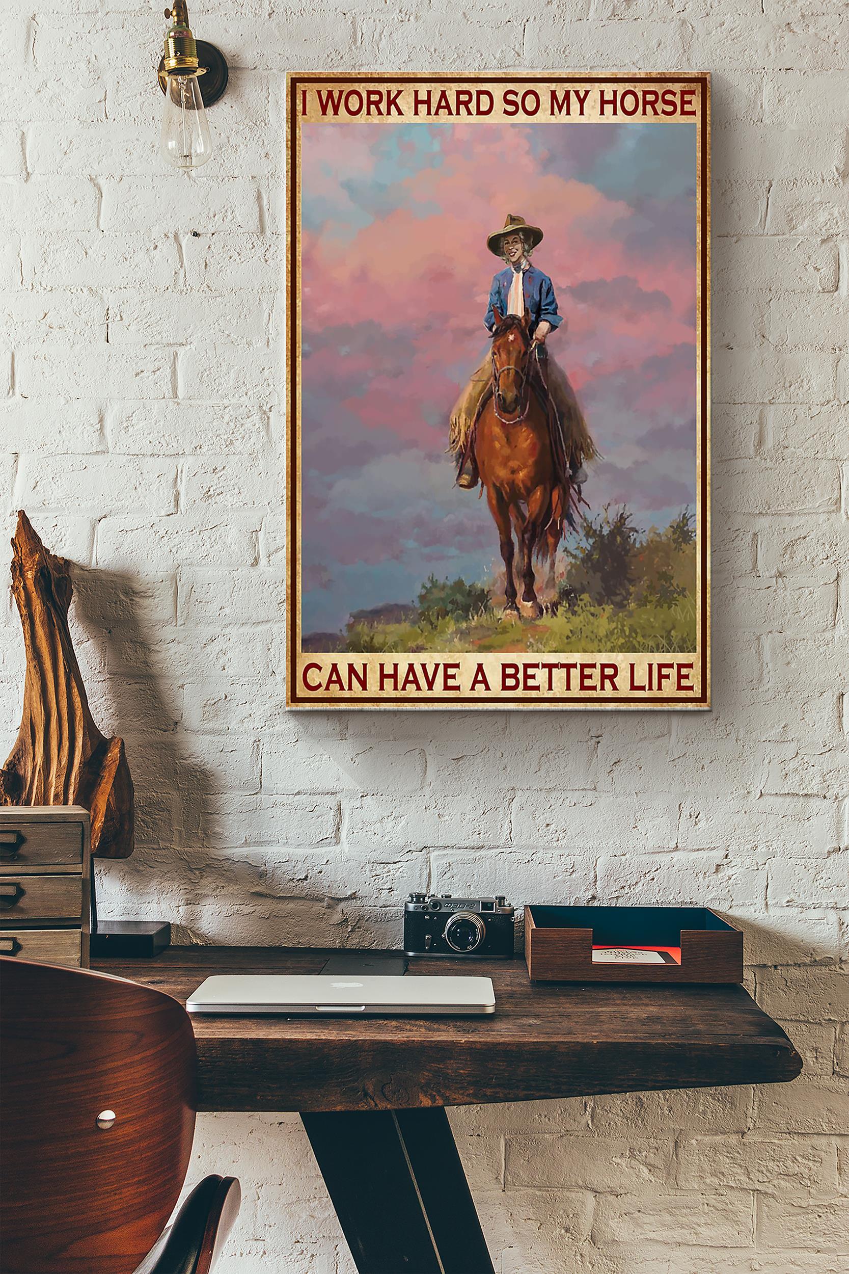 Cowgirl I Work Hard So My Horse Poster – Animal Wall Art – Gift For Horse Lover Cowboy Farmhouse Decor Wrapped Canvas